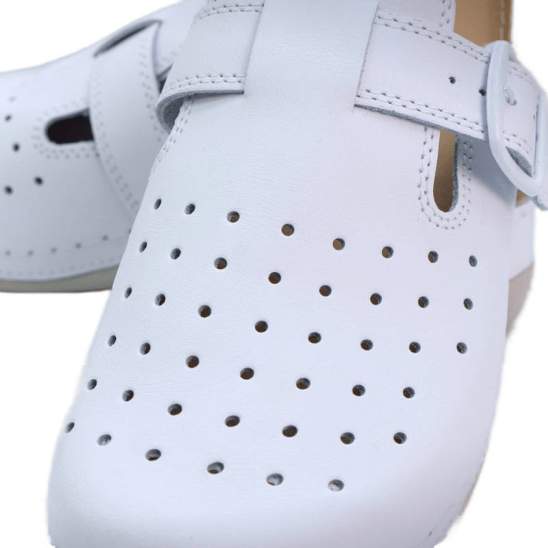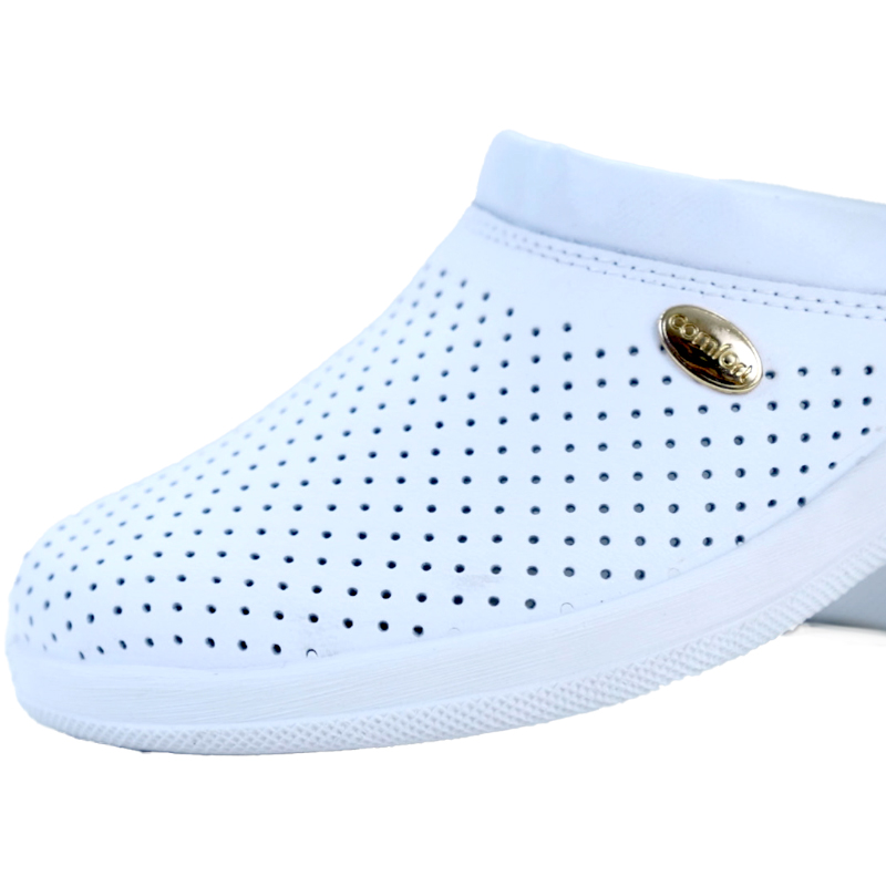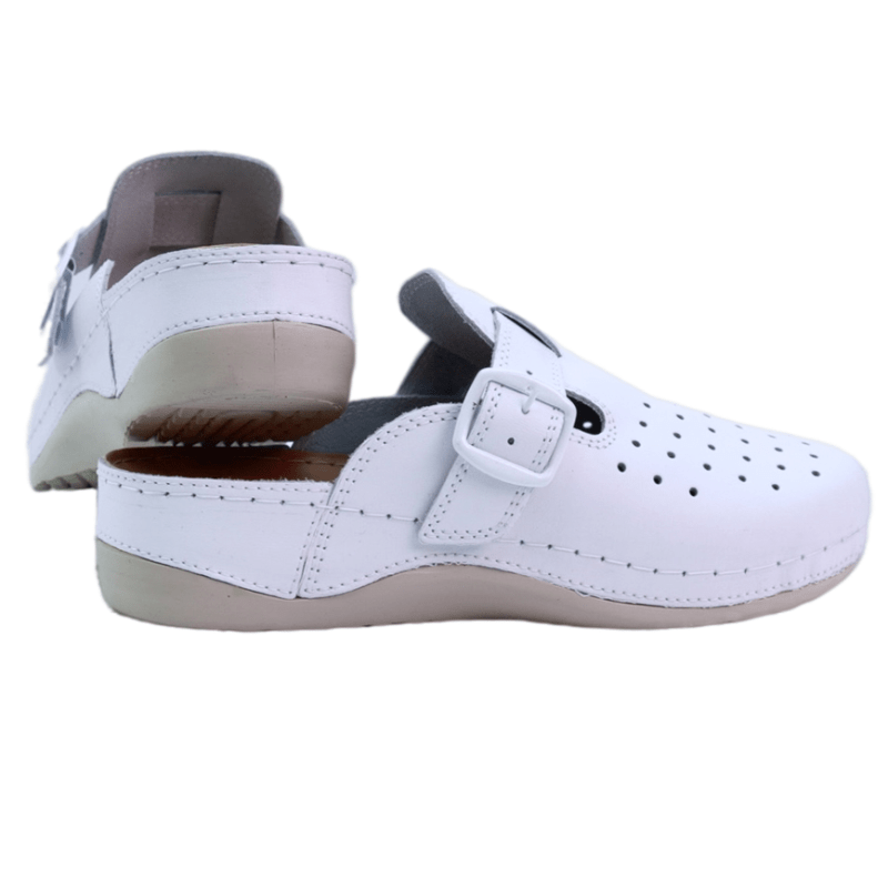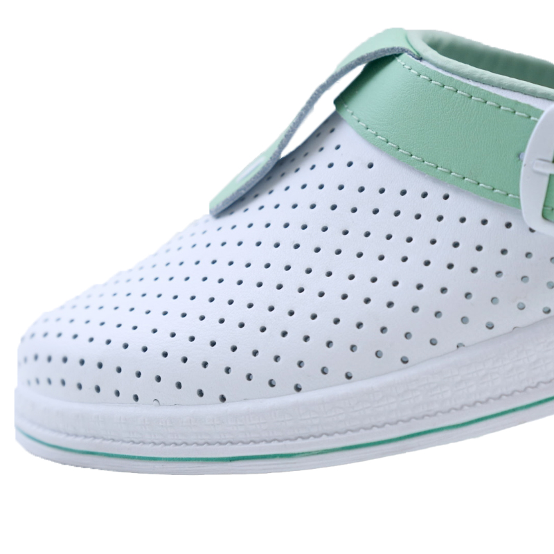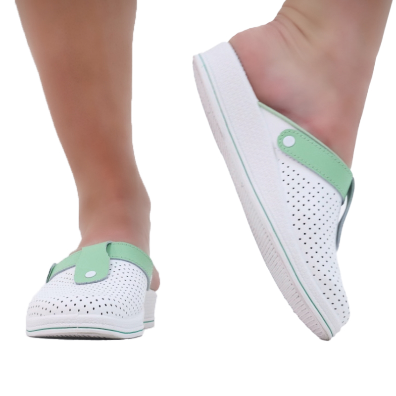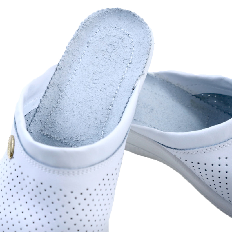 Сабо Симона – это элегантный европейский стиль, качественная итальянская кожа и неописуемый комфорт анатомической стельки! Редкое сочетание красоты и удобства! Сабо отлично сочетается как с элегантной, так и с повседневной одеждой! Просто выбирайте классический белый цвет или изюминку в виде изумрудного декора! А какие они удобны! Увеличенная полнота, облегченная подошва и стелька из натуральной кожи обеспечат вам летящую походку!