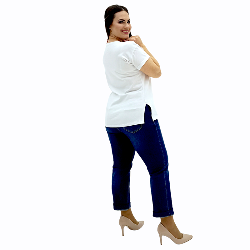 Элегантная футболка Амели с налетом богемного шика от Распакуй ТВ! Идеальное решение для вашего гардероба! Три утонченные расцветки на выбор, размерный ряд от 42 до 62 и стройнящий прямой крой.