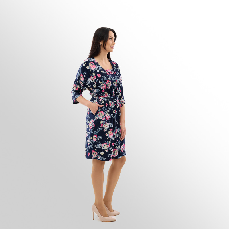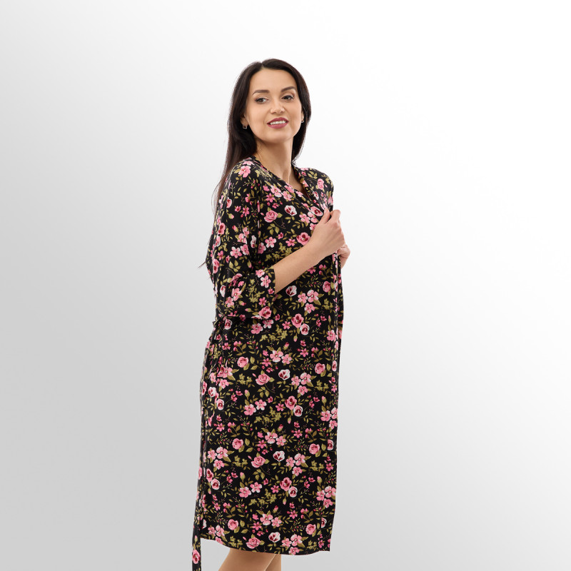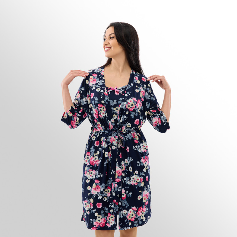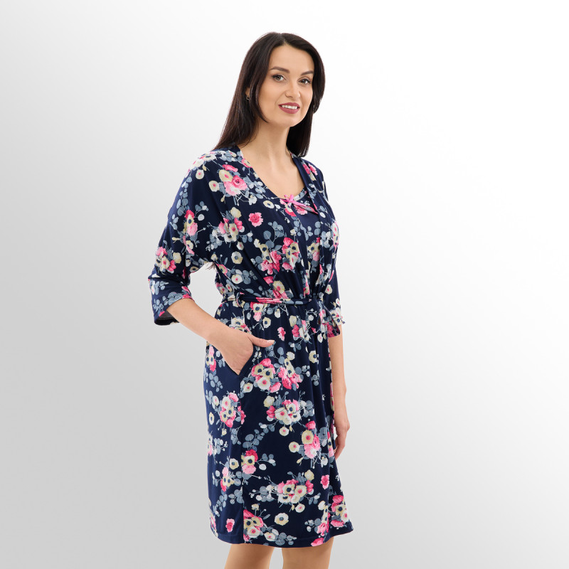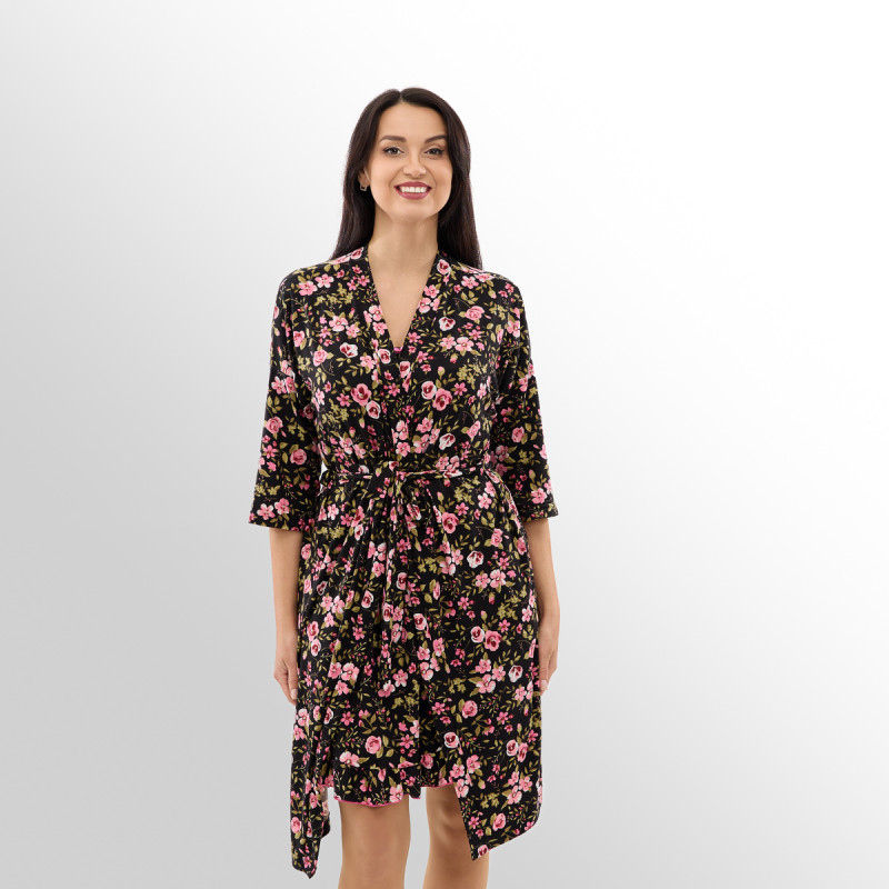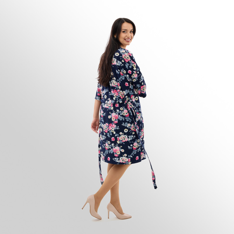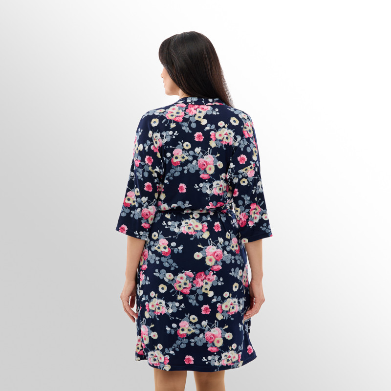 Дополняет халат освежающий цветочный принт! В коллекции представлены три стильных расцветки: великолепная темно-синяя, нежная розовая и классическая черная! А размерный ряд сдвоенный – от 44 до 62!