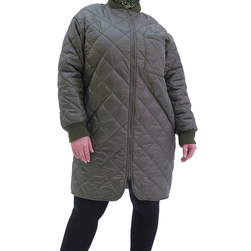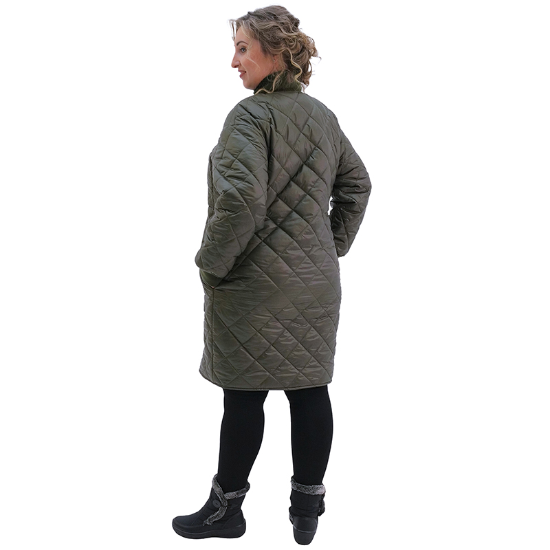 Пальто Прима - это отличное решение для стильных дам. Великолепный дизайн в сочетании с невероятным комфортом не оставит равнодушной ни одну модницу! Классический черный и расцветка хаки впишутся в любой гардероб! Актуальная стеганая фактура, дополненная трикотажными манжетами и воротником, добавит образу буржуазного шика! А свободный прямой крой и длина до колена не только выгодно подчеркнут вашу фигуру, но и позволят вам комфортно чувствовать себя в любую погоду! Практичная ткань дюспо и современный наполнитель синтепон защитят в любую непогоду! А сдвоенные размеры до 60 гарантируют идеальную посадку по фигуре!