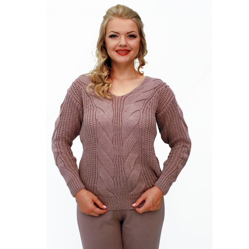 Вырез на кофте V-образной формы. Рукав длинный, с эластичным манжетом. Вязкая очень напоминает мелкого и крупного косу кстати является прекрасным решением. Ведь вязкая косой сейчас на пике популярности.