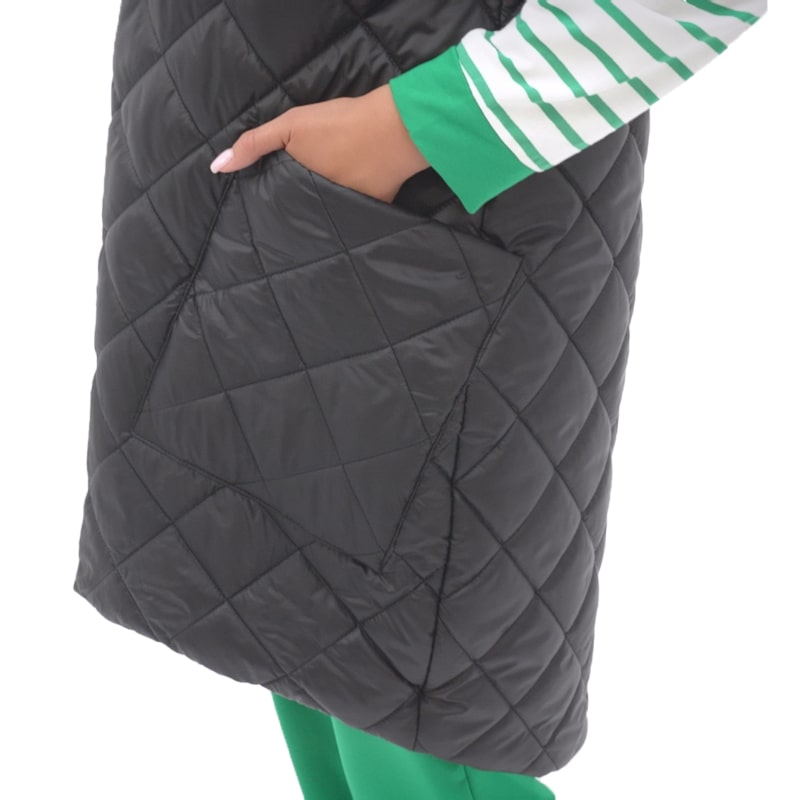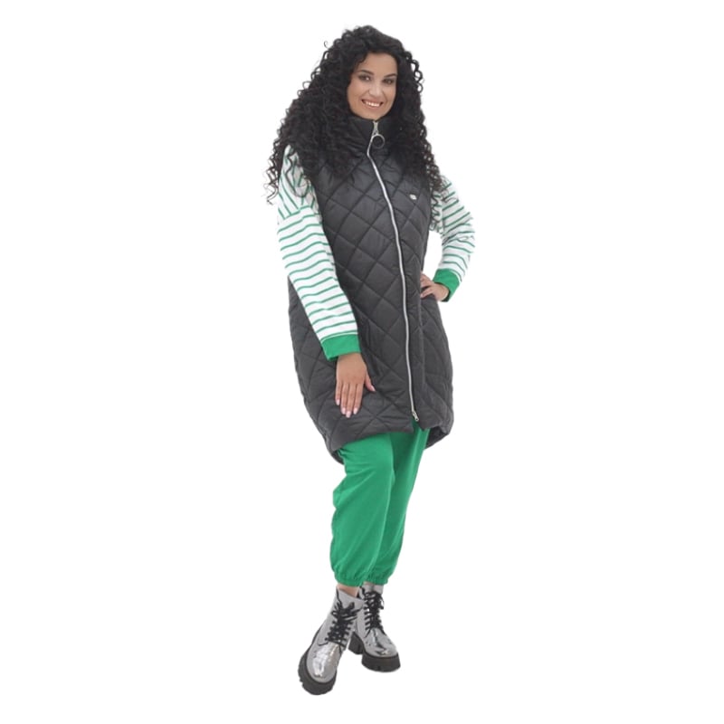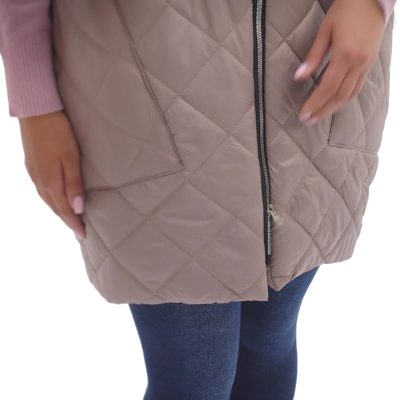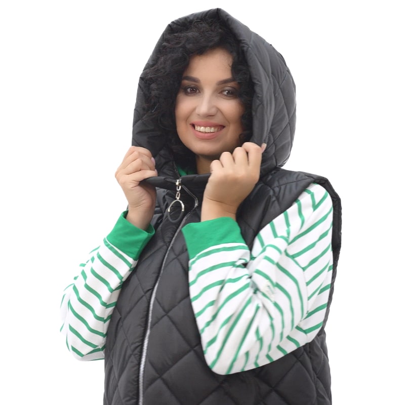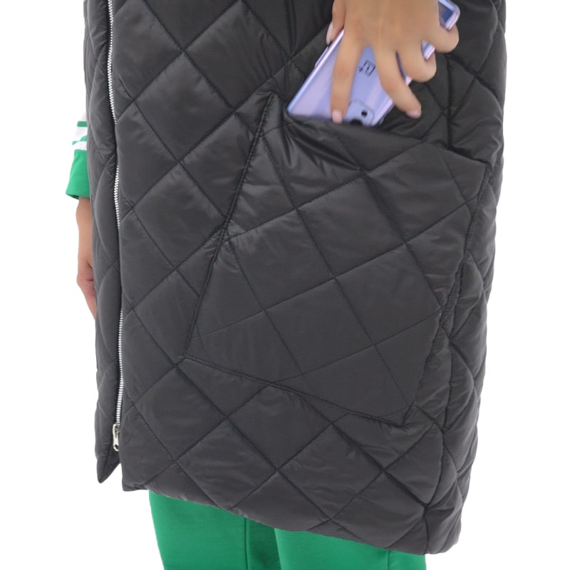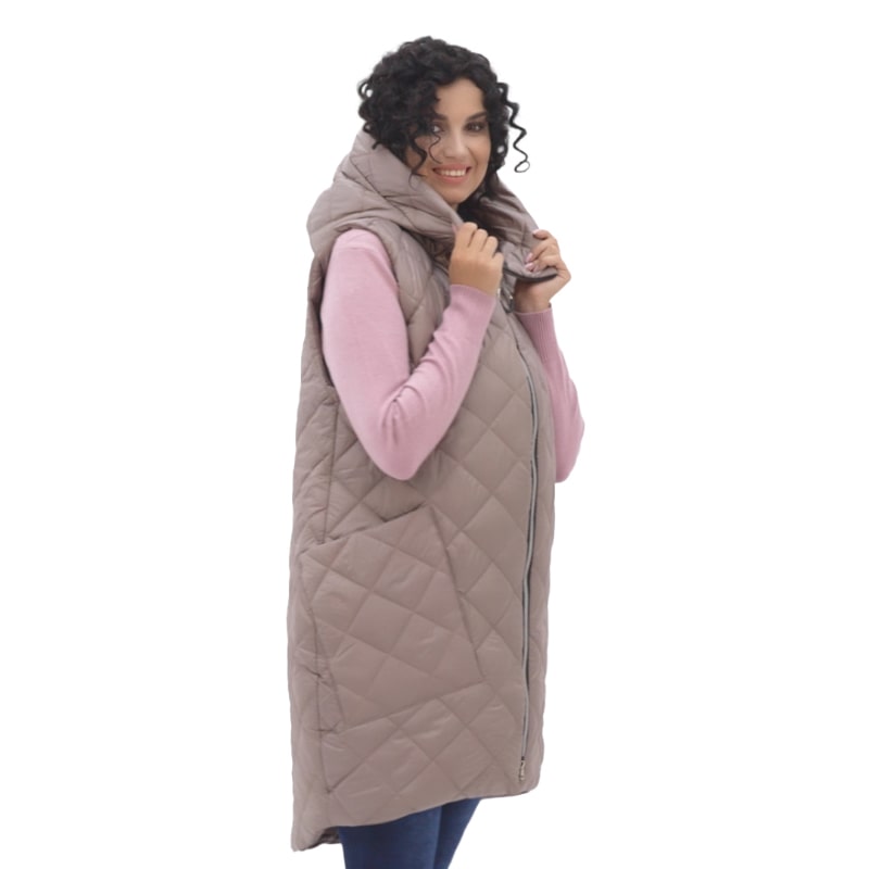 Жилет Филория – это отличное решение в прохладную погоду! Удлиненный силуэт и капюшон отлично защищают от ветра и дождя! ткань лаке и современный наполнитель подарят невероятное тепло и комфорт! А красивый, немного приталенный крой подчеркнет женственность фигуры! При этом благодаря двусторонней молнии вы всегда сможете удобно застегнуть жилет! А накладные карманы помогут взять необходимые мелочи с собой!