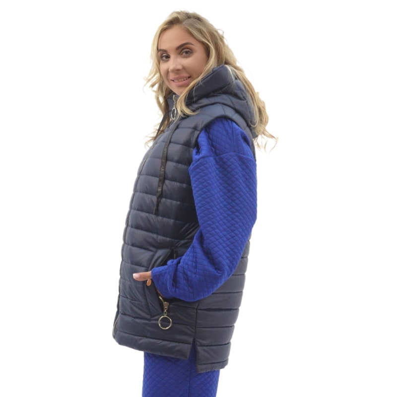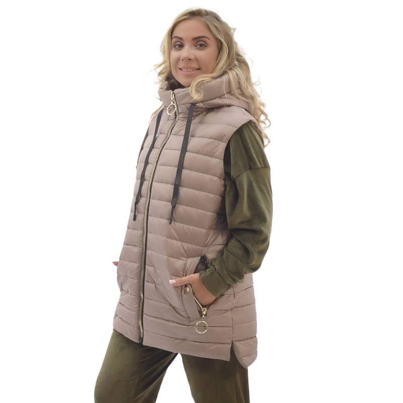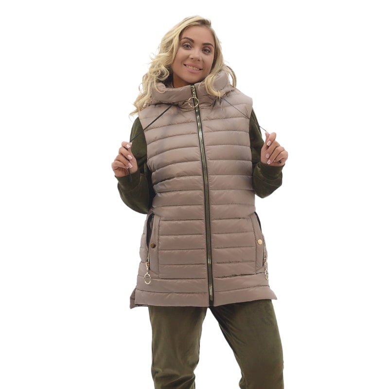 Жилет Шарм – это отличное решение для межсезонья и прохладных дней! Удлиненный крой, капюшон, подкладка на основе натуральной шерсти – все для вашего комфорта! А еще необычный двойной дизайн карманов: вы легко можете согреть ручки в боковых карманах, а мелочи положить в карманы на молнии! Очень удобно! И очень красиво! Жилет шарм отлично садится по фигуре, подчеркивая ее женственность и красоту!