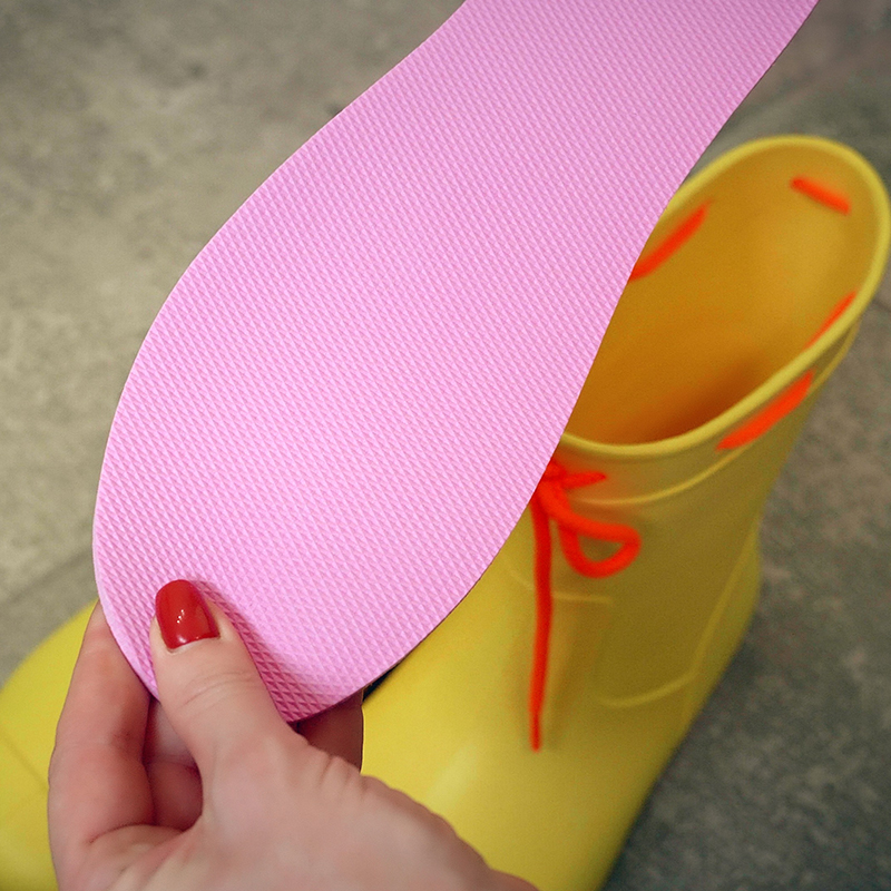 Сапожки выполнении цельнолитым способом из водонепроницаемого и стойкого к истиранию материала ЭВА. Мягкого, невероятно легкого и еще и с водоотталкивающим эффектом. Они не боятся ни дождя, ни грязи. Вашим ножкам всегда будет тепло и сухо.