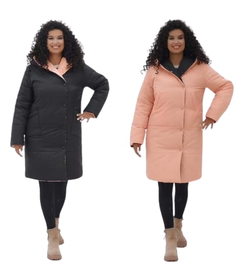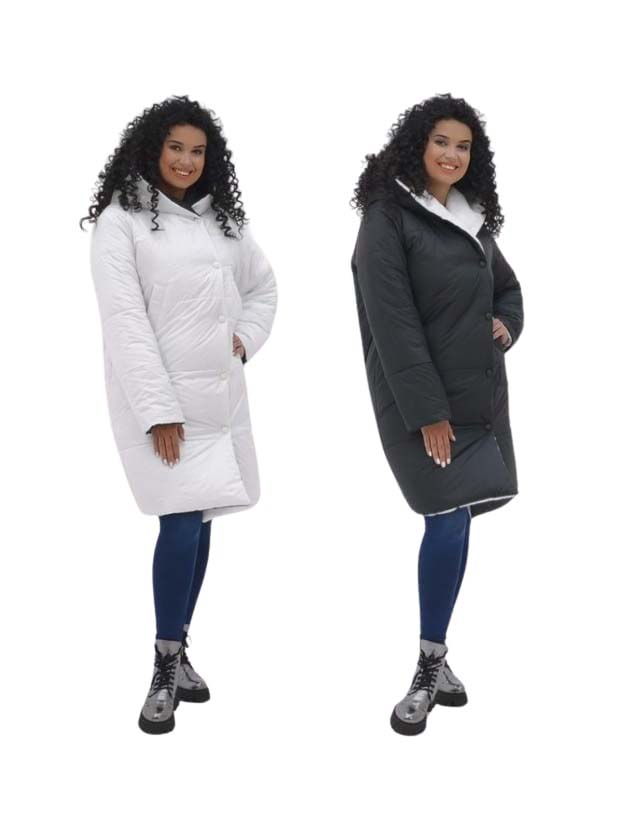 - Модель: Двухсторонняя, с прямым кроем и капюшоном.
