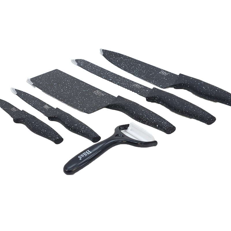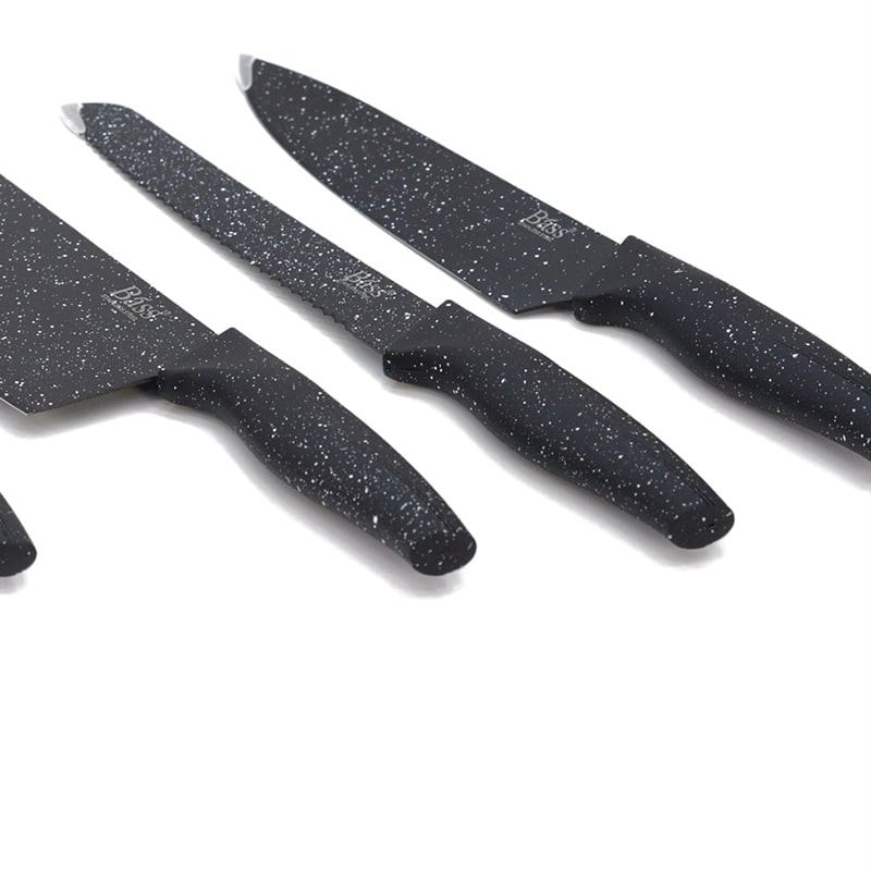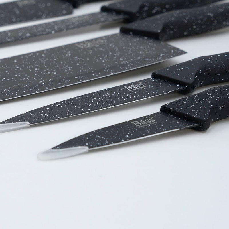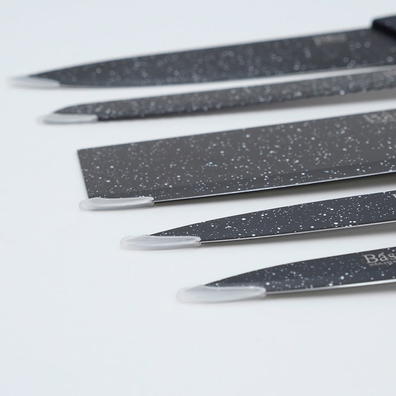 Адже у вас під рукою завжди буде потрібний гострий ніж! У наборі: кухарський ніж, ніж для м'яса, ніж для хліба, універсальний ніж та ніж для очищення овочів!