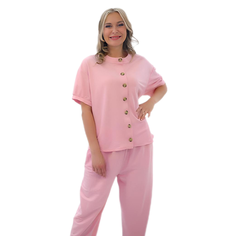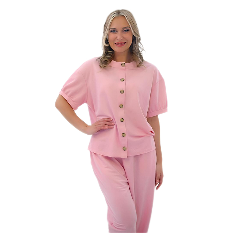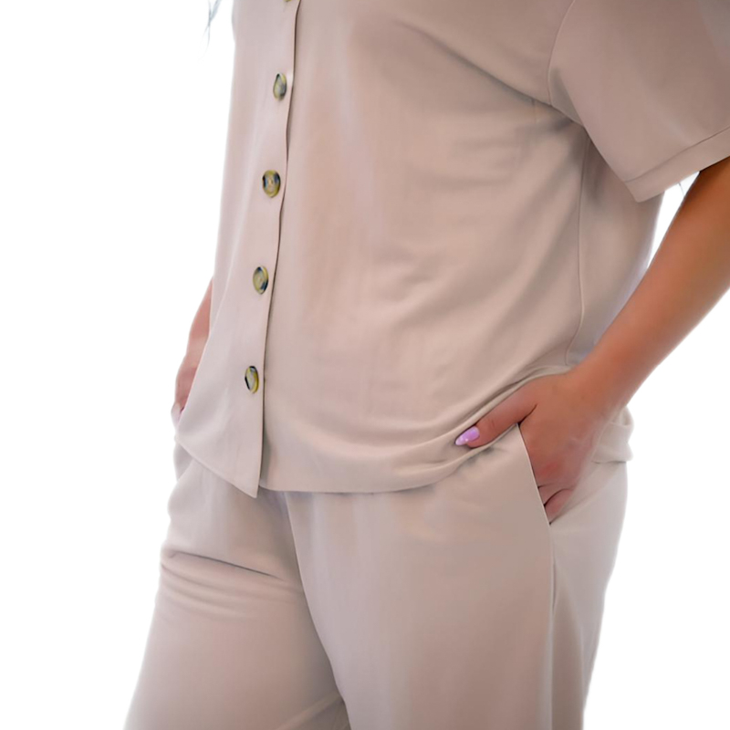Костюм Марібель – справжня знахідка для тих, хто цінує класику, але при цьому не хоче жертвувати комфортом! Блуза класичного крою на ґудзиках та вільні штани з еластичним поясом створюють благородний ошатний образ! Спеціальна конструкція акцентує красу фігури, а трендові пастельні відтінки відмінно поєднуються з будь-яким типом зовнішності! Обирайте: класичний кремовий, незвичайний оливковий чи ніжний рожевий кольори! Або одразу декілька! Розмірний ряд здвоєний від 50 до 60. Виготовлений костюм Марібель із дихаючого матеріалу на основі льону. Вам буде комфортно і в спекотні і в прохолодні дні!