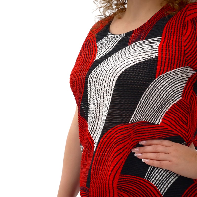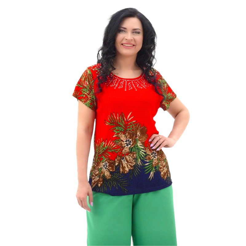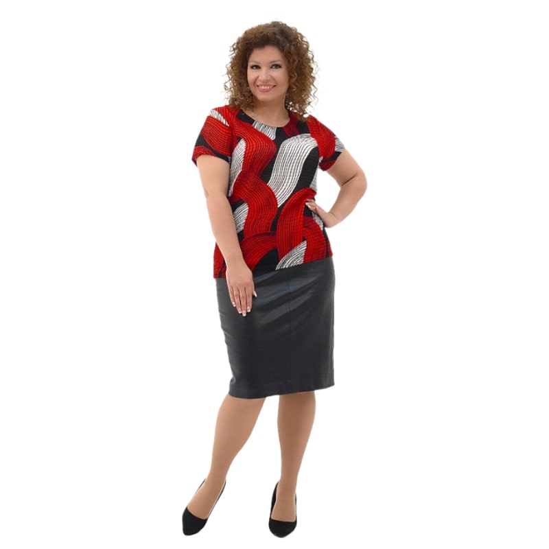 Блуза Нарсія - це блуза, яка чудово сідає на будь-яку фігуру! Адже завдяки незвичайній фактурі тканини - вона добре тягнеться, але при цьому зберігає форму! Ви тільки погляньтеяк презентабельно і дорого вона виглядає! Лаконічна форма блузи вдало доповнена яскравими фантазійними забарвленнями! На вибір дизайн квіти зі стразами та дизайн лінії у чорному та червоному кольорах! Подивіться, які класні образи виходять як із брюками, так і зі спідницями!
