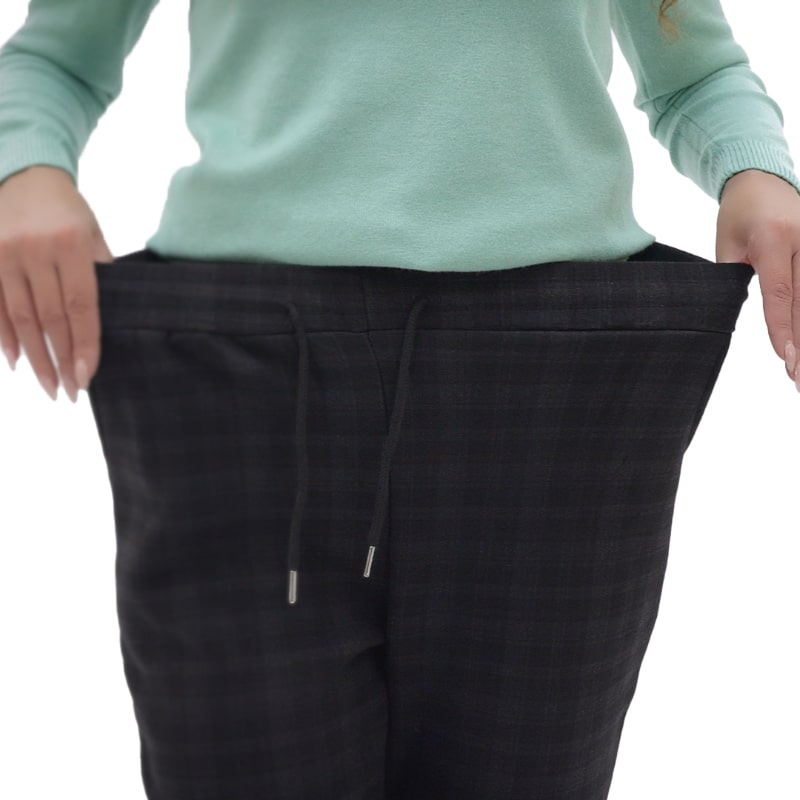 Напівприлеглий крій робить фігуру стрункішою, універсальний графітовий колір доповнений трендовою клітиною, а гумка на талії та здвоєні розміри забезпечать ідеальну посадку!