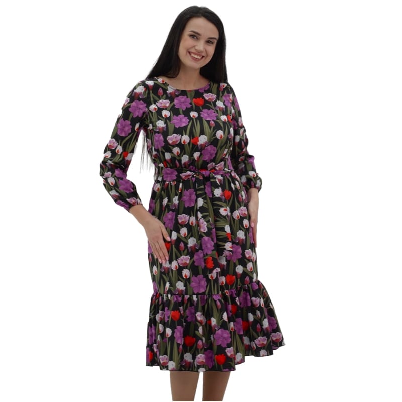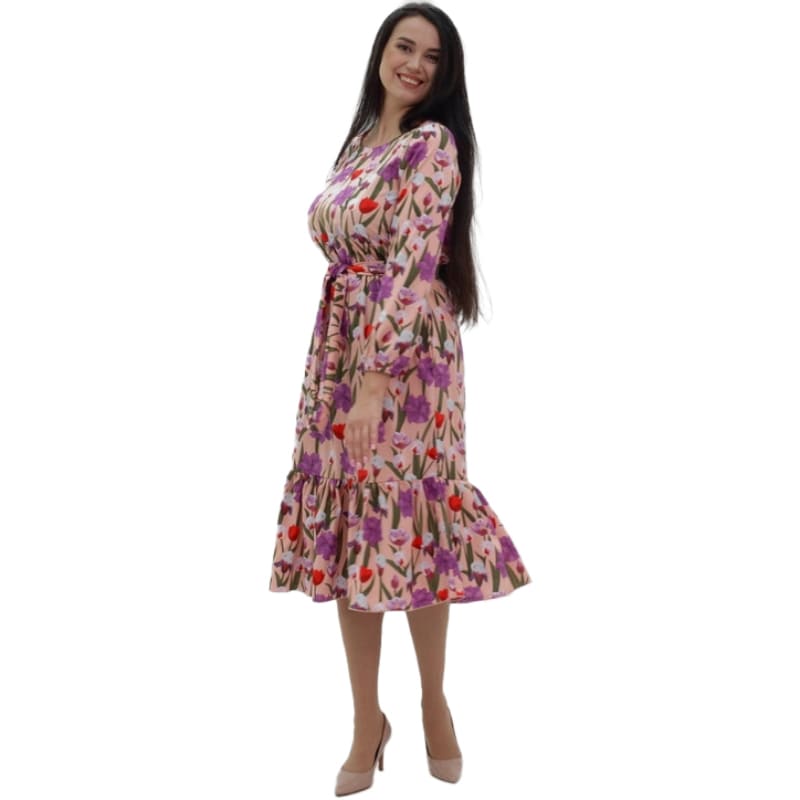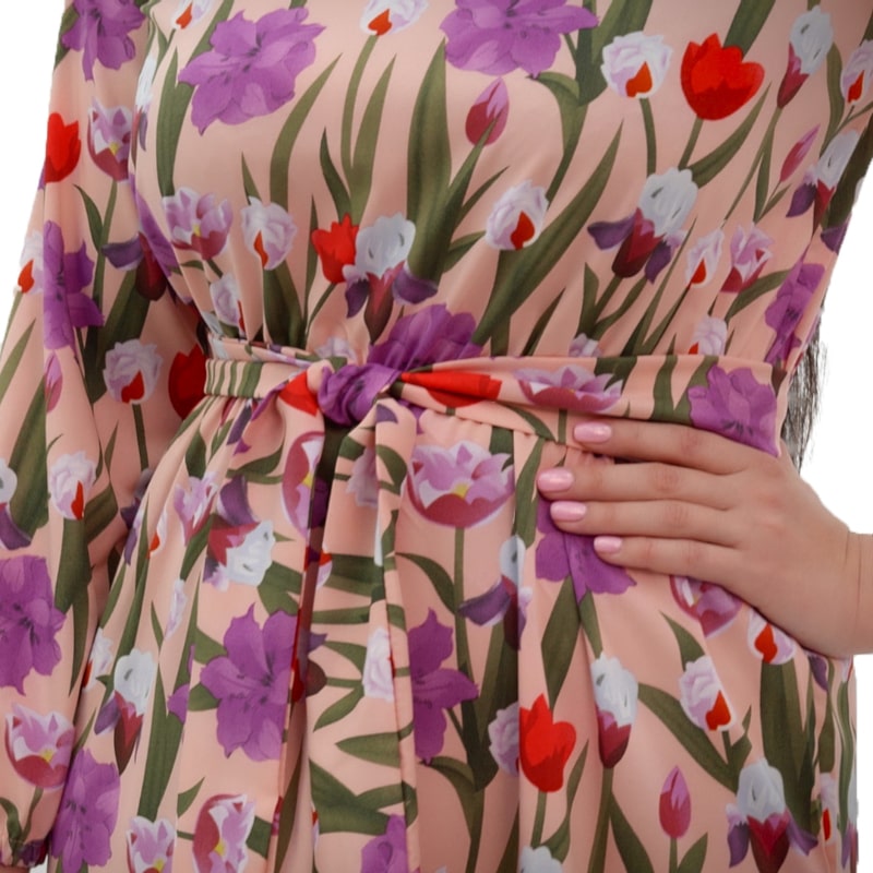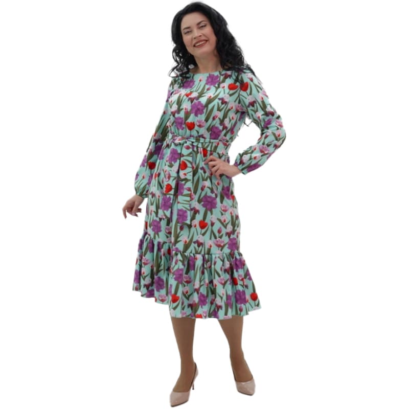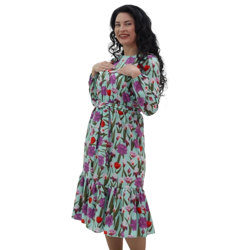 Доповнене елегантним поясом, сукня акцентує на талії, додаючи витонченості кожному образу. Волан надає виробу нотку розкоші та робить образ повітряним та жіночним. З сукнею "Квітнева" ви відчуєте себе по-справжньому легкою та ніжною, як ніколи раніше!