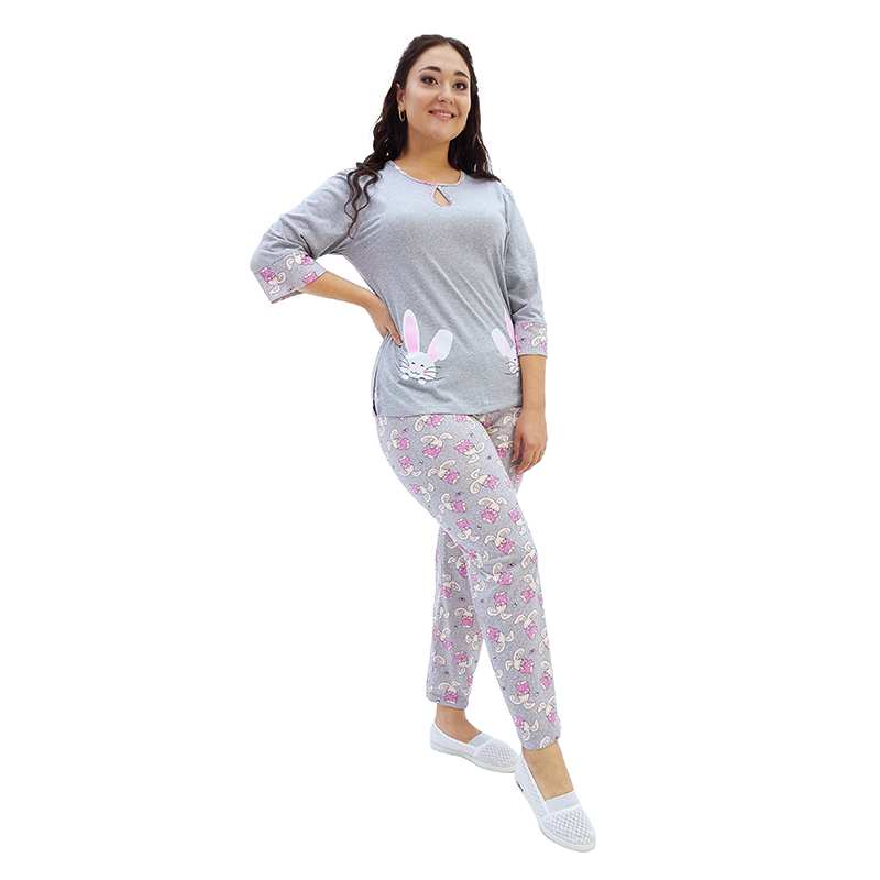 Бавовняний кулир чудово відводить вологу, дозволяє тілу дихати! Ідеальне рішення для домашнього одягу! Продумані забарвлення додадуть настрою: в чоловічому варіанті класичні сіра і синя, а в жіночому - рожева і сіра!