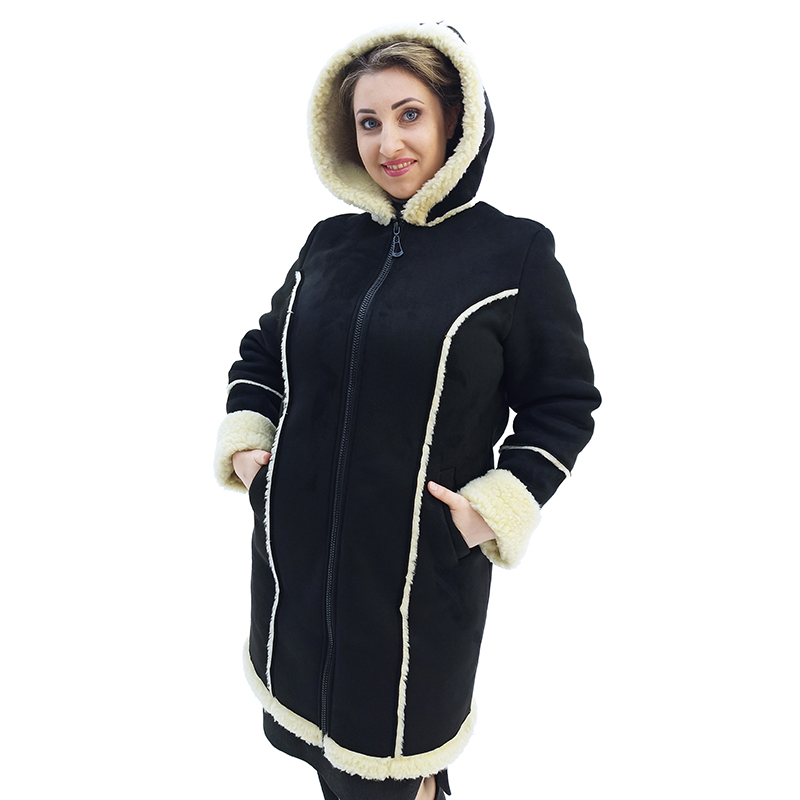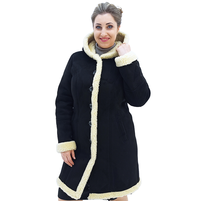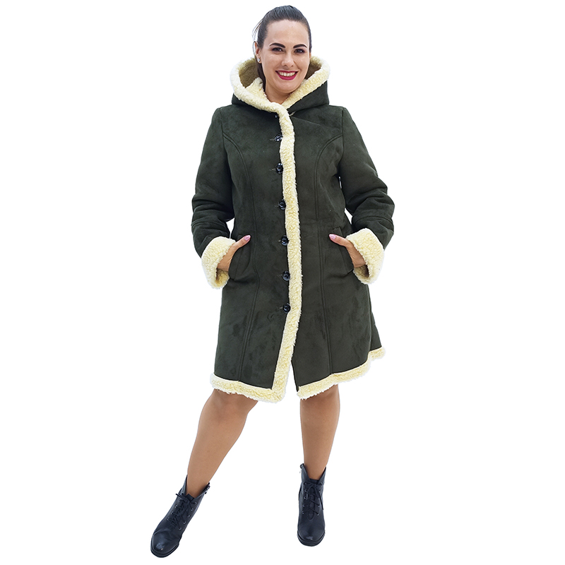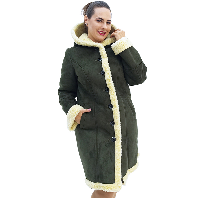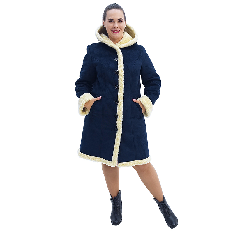 Спеціальний крій візуально подовжить силует, приховає кілька розмірів! А бічні кишені додадуть ще більше зручності! Представлена в декількох кольорах! Насичений синій, благородний темно-оливковий, вишуканий коричневий і строгий чорний! Виготовлена дублянка з практичної і довговічної еко замші! Тепла підкладка з натуральною овечою вовною в складі і затишний капюшон захистять від поривів холодного вітру, снігу і навіть дощу!