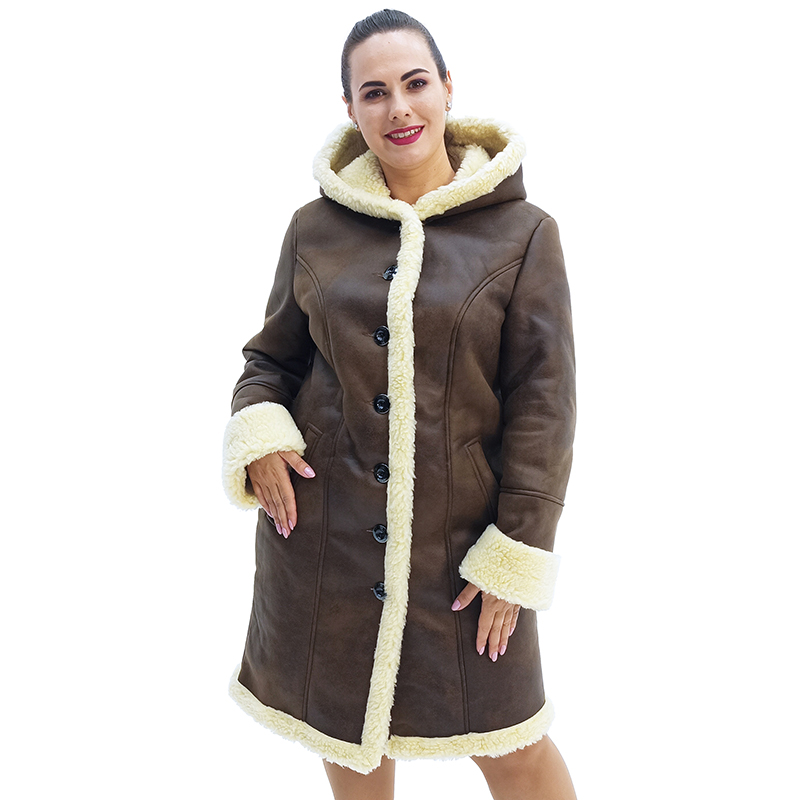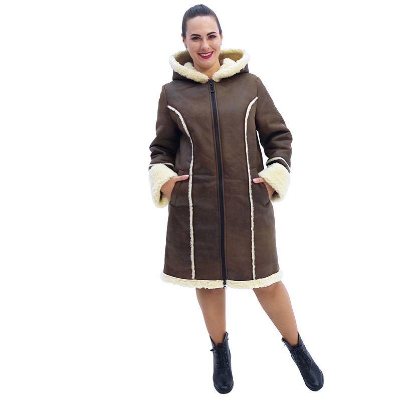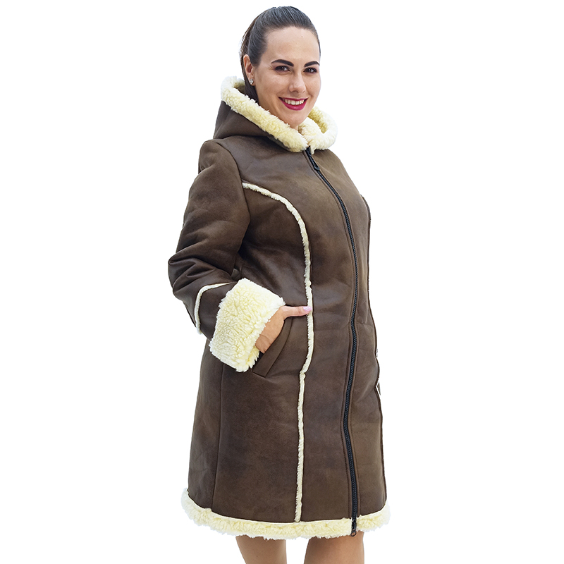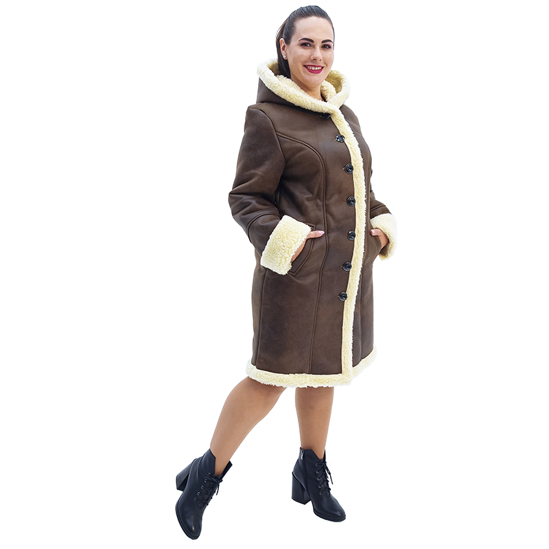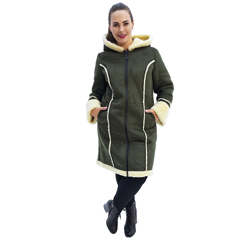 Спеціальний крій візуально подовжить силует, приховає кілька розмірів! А бічні кишені додадуть ще більше зручності! Представлена в декількох кольорах! Насичений синій, благородний темно-оливковий, вишуканий коричневий і строгий чорний! Виготовлена дублянка з практичної і довговічної еко замші! Тепла підкладка з натуральною овечою вовною в складі і затишний капюшон захистять від поривів холодного вітру, снігу і навіть дощу!