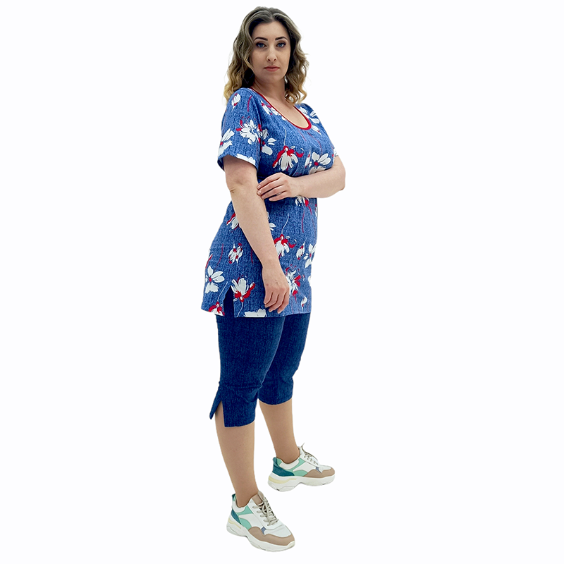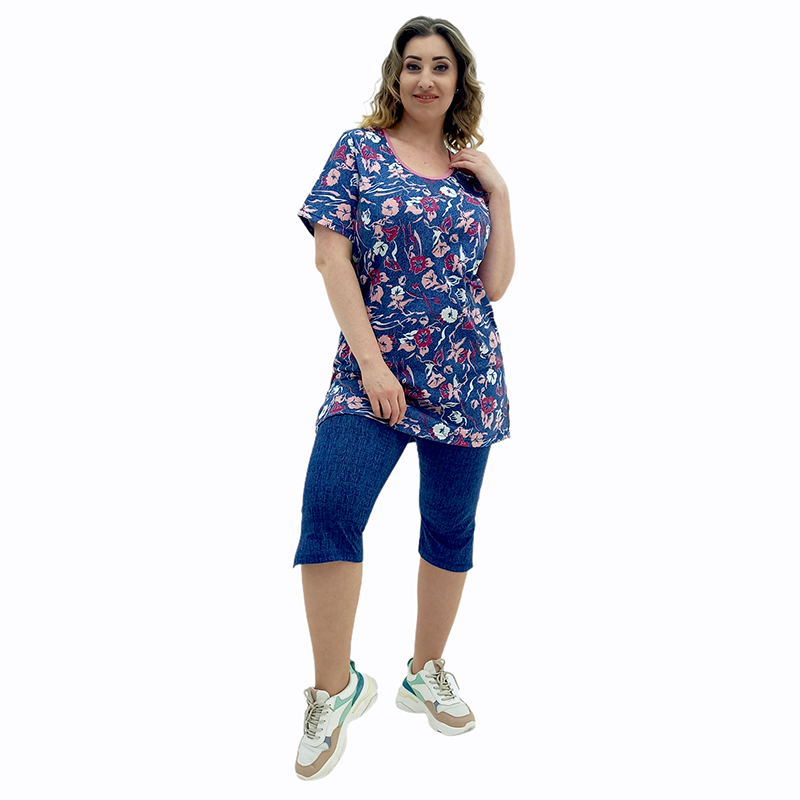 Туніку ідеально доповнюють бриджі! Пружний матеріал на основі бавовни і еластичний пасок забезпечують неймовірно комфортну посадку! А незвичайна фактура під джинс - чудовий зовнішній вигляд! Вдала довжина вигідно підкреслює красу ніжок! Ви будете виглядати модно і стильно!