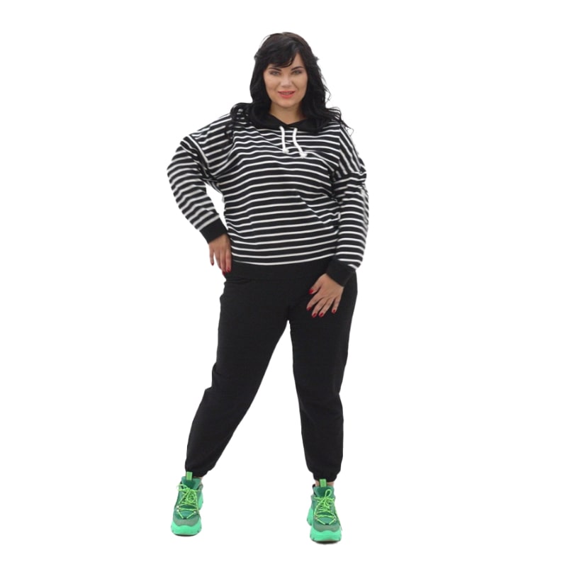 Тільки подивіться, як незвичайно та красиво виглядають наші моделі, а все завдяки актуальній смужці. А у поєднанні з благородними забарвленнями вона виглядає ще більш привабливо. У колекції костюм чорного, зеленого та сірого кольорів.