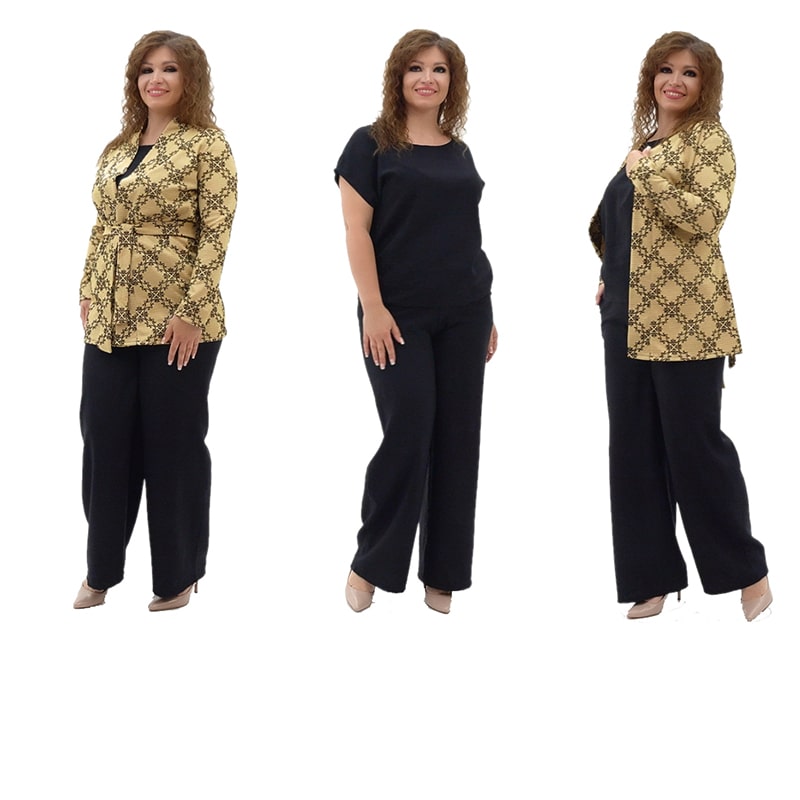 З Костюмом Левіна ви отримаєте величезну кількість різноманітних поєднань! Адже ви купуєте відразу три речі: штани, блузу та кардиган, які чудово поєднуються один з одним!