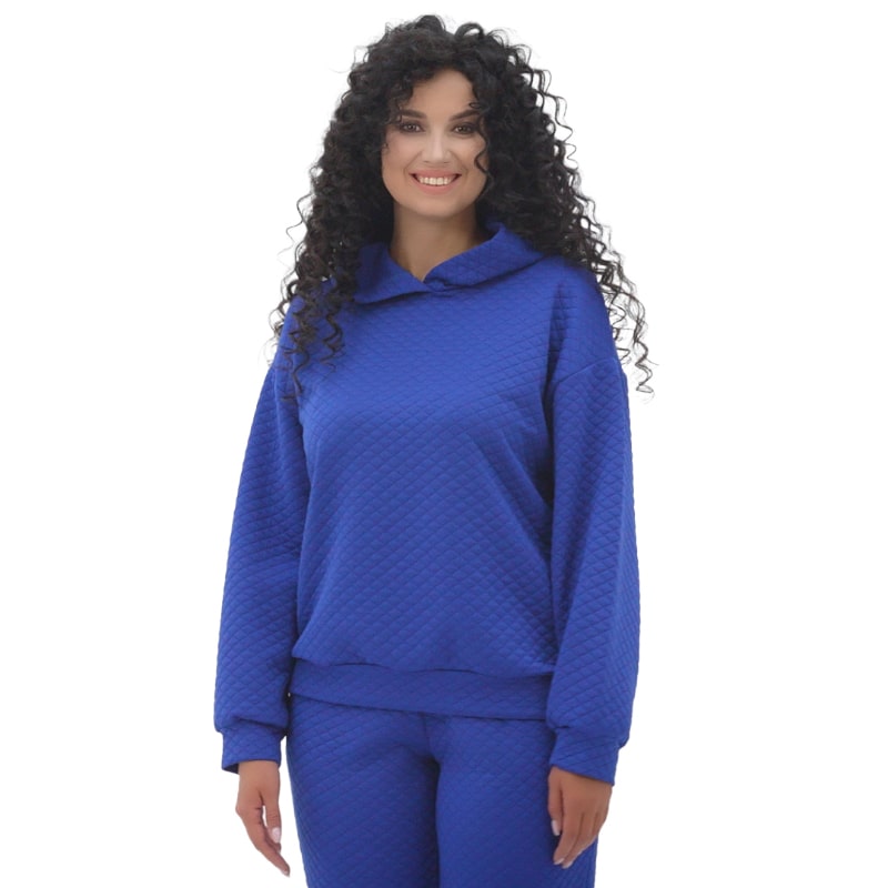 Худі вільного крою та штани м'яко гортають фігуру і створюють розслаблений та стильний образ. Костюм Відтінки сапфіру виконаний із преміум трикотажу на основі бавовни. Не мнеться, не кошлатиться, не тьмяніє після прання та прослужить вам довгі роки.