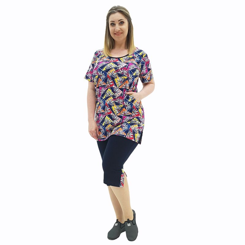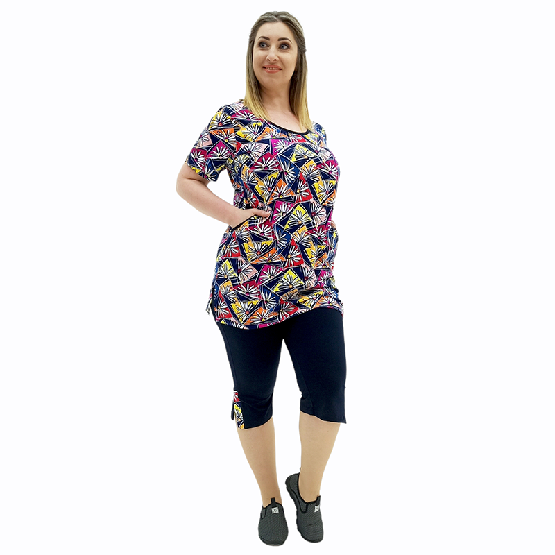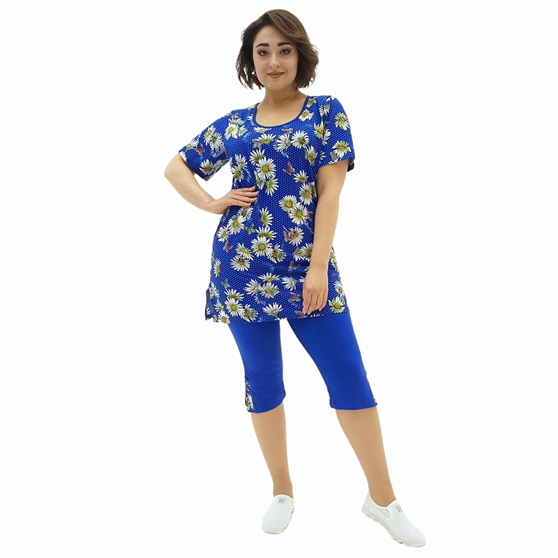 Туніку ідеально доповнюють бриджі! Пружний матеріал на основі бавовни і еластичний пасок забезпечують неймовірно комфортну посадку! А незвичайна фактура під джинс - чудовий зовнішній вигляд! Вдала довжина вигідно підкреслює красу ніжок! Ви будете виглядати модно і стильно!