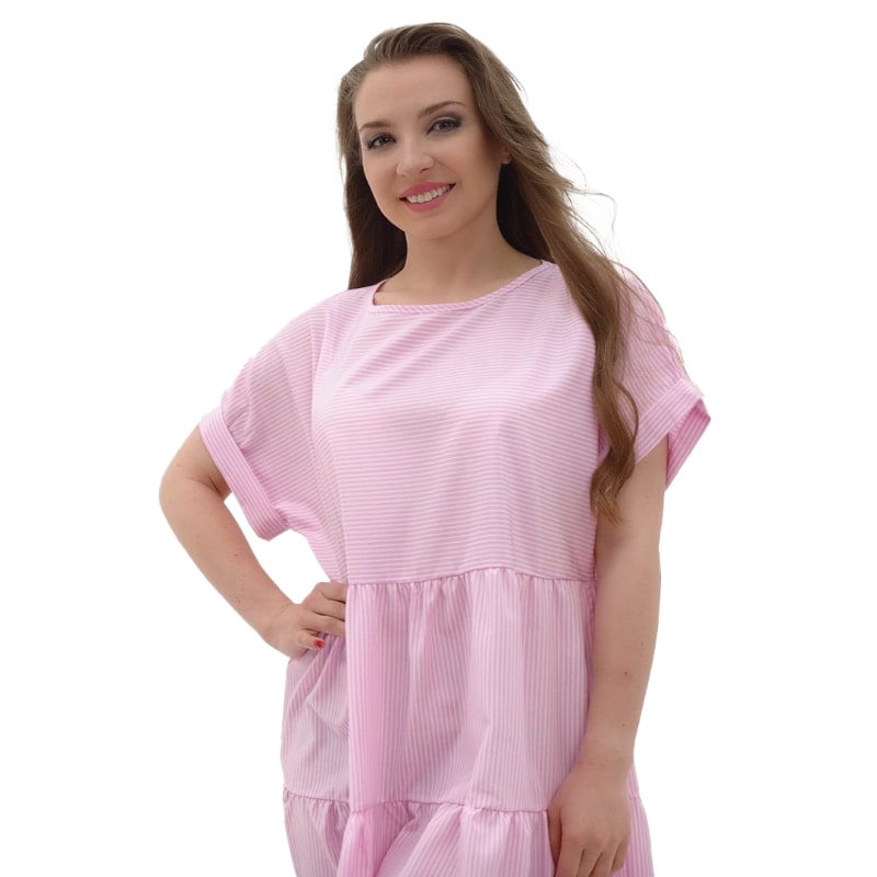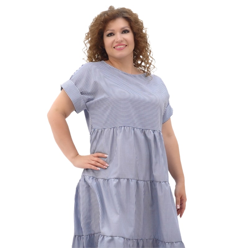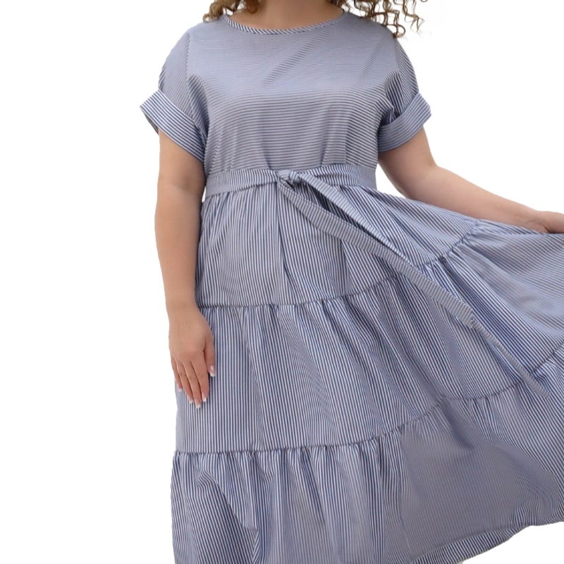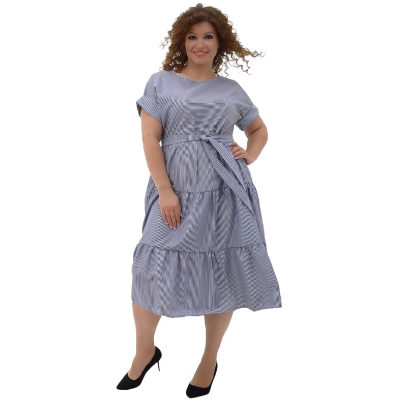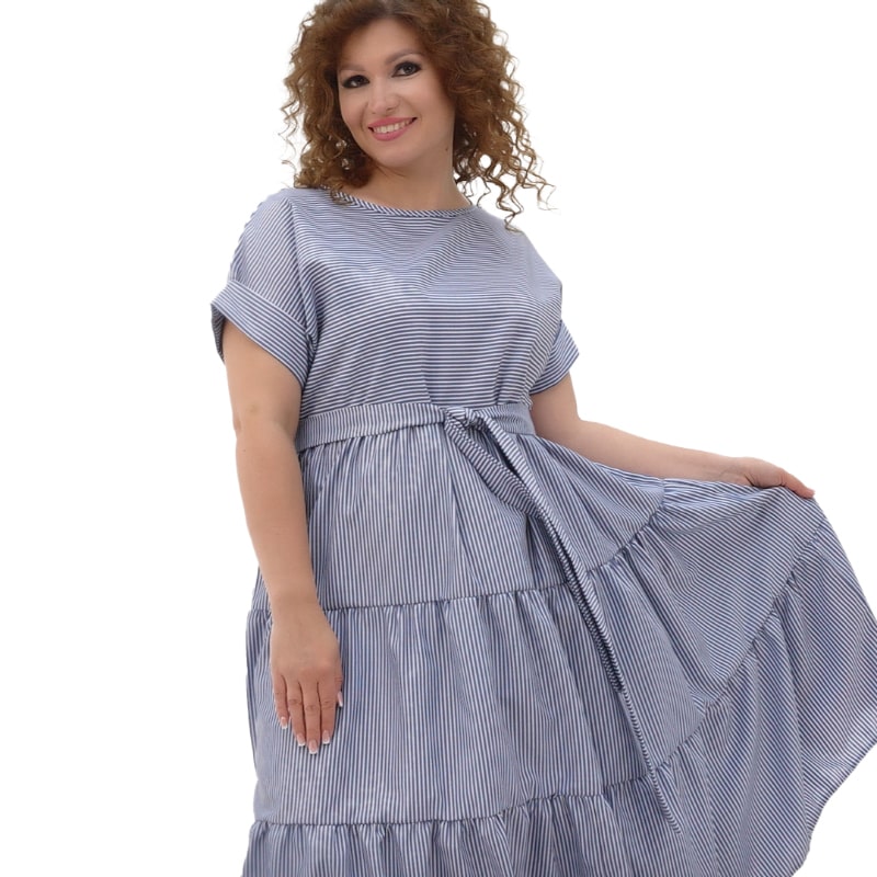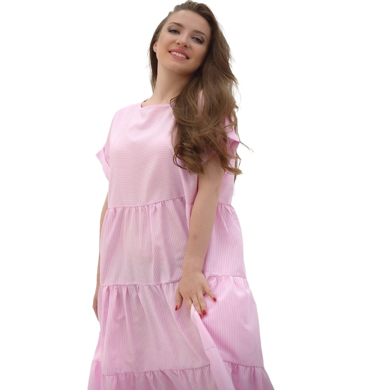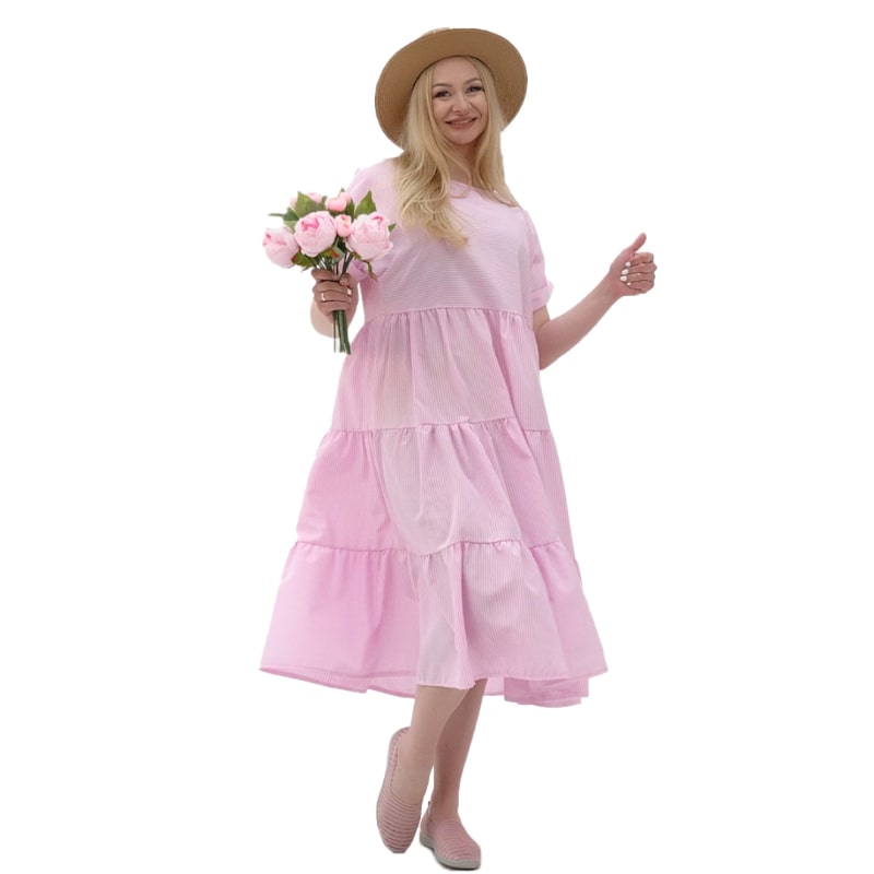 До того ж носити сукню неймовірно приємно! Широка пройма рукавів, продуманний крій та здвоєні розміри до 60 гарантують відмінну посадку сукні на будь-який тип фігури!! Але це не все! Якісна бавовняна тканина чудово пропускає повітря і забезпечує прекрасне самопочуття навіть у найсильнішу спеку! А освіжаюче рожеве та стильне синє забарвлення, оформлене в модний принт смуги, доповнить відчуття легкості образу!