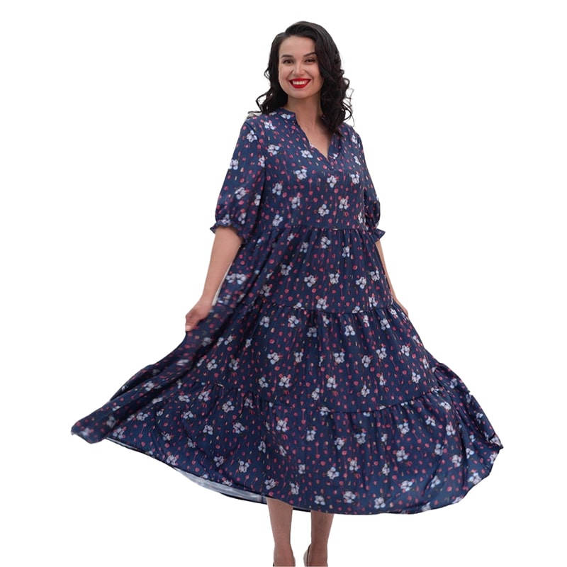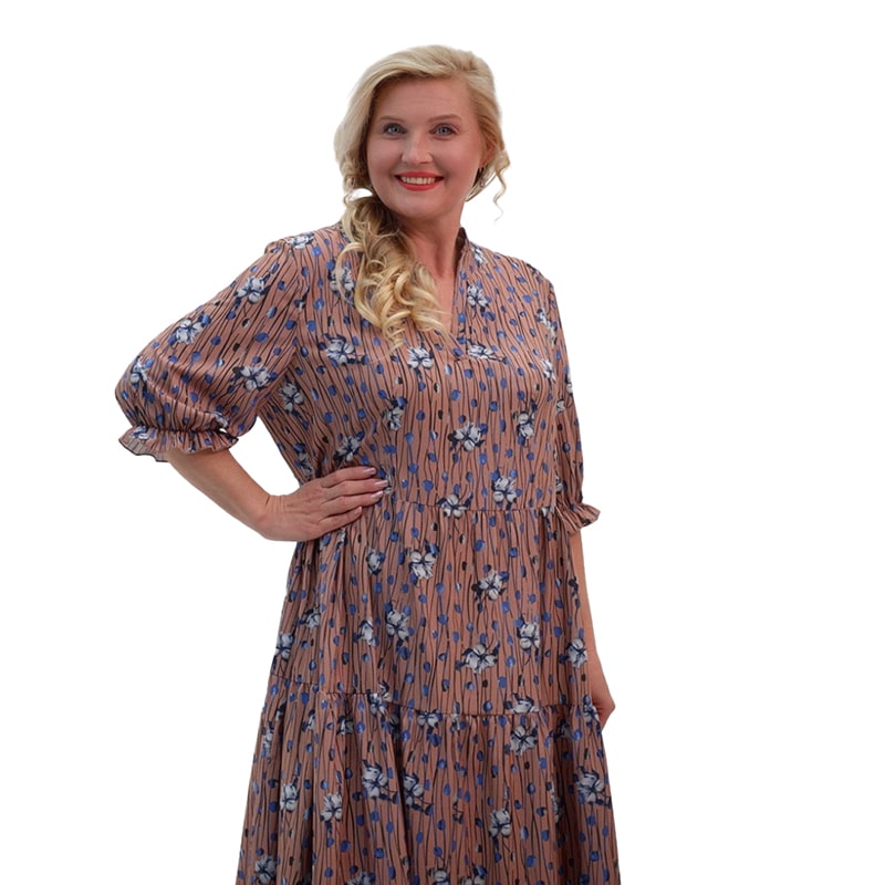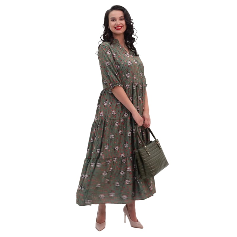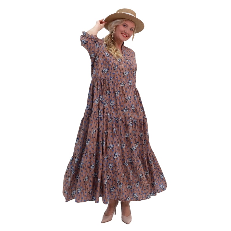 Фасон, що створює стрімкість: Вільний крій сукні Леся з воланами і максі-довжиною ефектно маскує будь-які особливості фігури, візуально роблячи силует більш вишуканим.