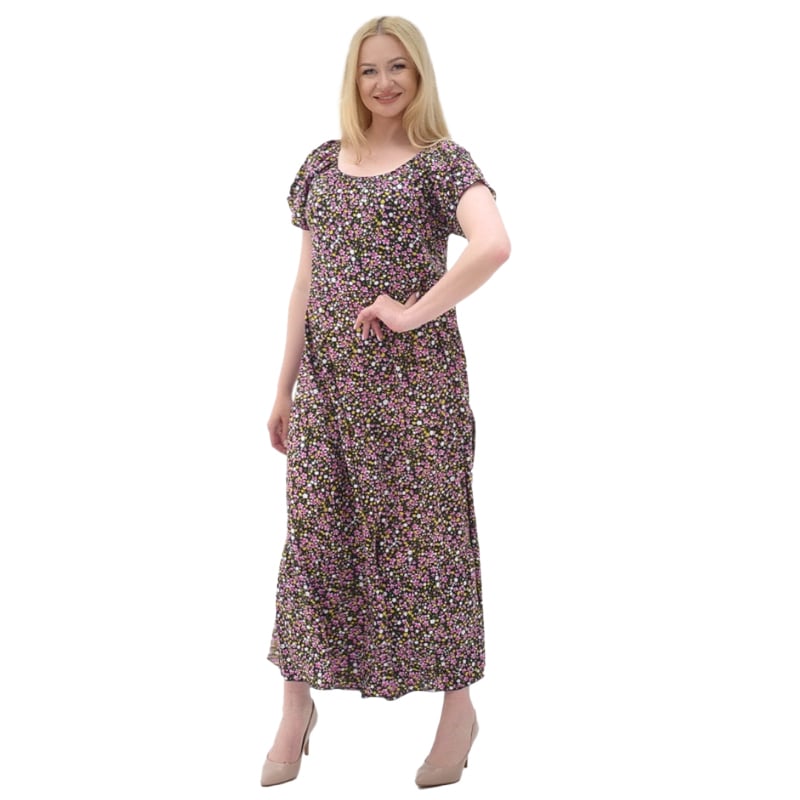Розміри до 58! Напівприлеглий силует візуально полегшує образ! Резинка на талії забезпечує ідеальну посадку! А гарне офрмлення зони декольте надасть образу легкої пікантності. Всі деталі підкреслюють переваги фігури і красу! А маленькі недоліки нехай лишаються вашим секретом! Сукня Віоланта від Розпакуй TV!