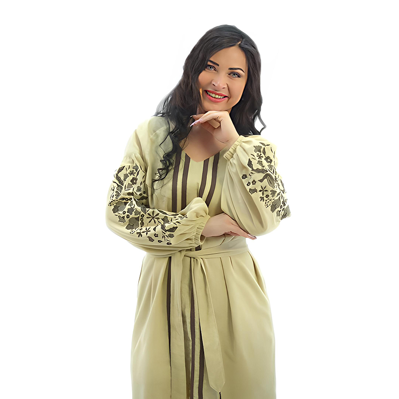 Сукня Роксолана - це розкішна етніка в сучасному звучанні! Жіночність ліній, продуманість деталей і вишукана вишивка підкорюють з першого погляду! і назавжди! В будь-який час і в будь-якій ситуації! Сукня буде доречною і на роботі, і на побаченні, і у повсякденному житті!