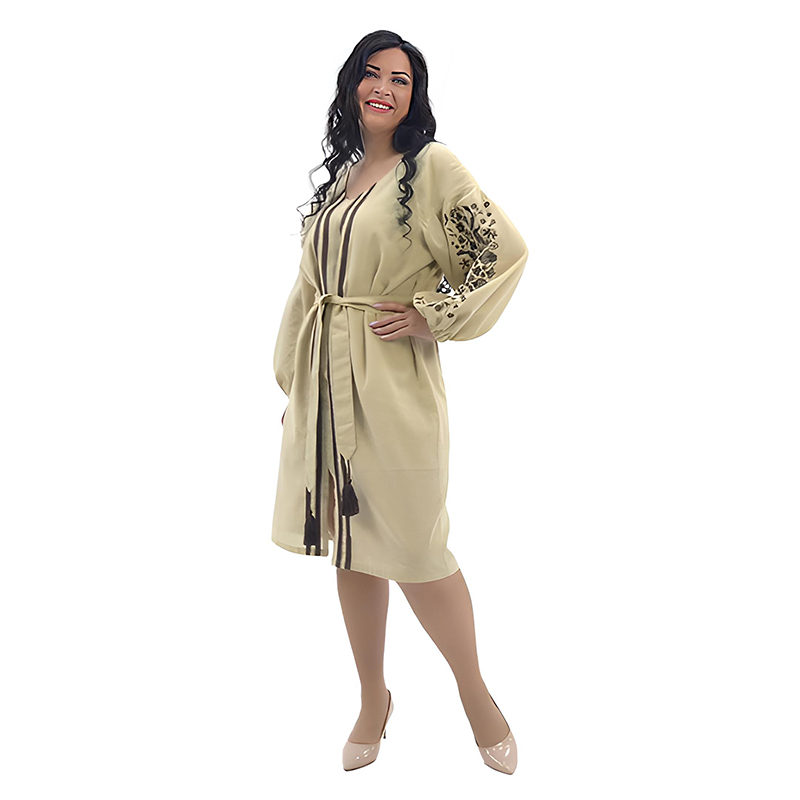 Класичний вільний крій в поєднанні з паском дозволить змоделювати жіночний силует, широкий рукав додасть ніжності і романтичності, а два варіанти довжини дозволять підібрати сукню саме під вашу фігуру!