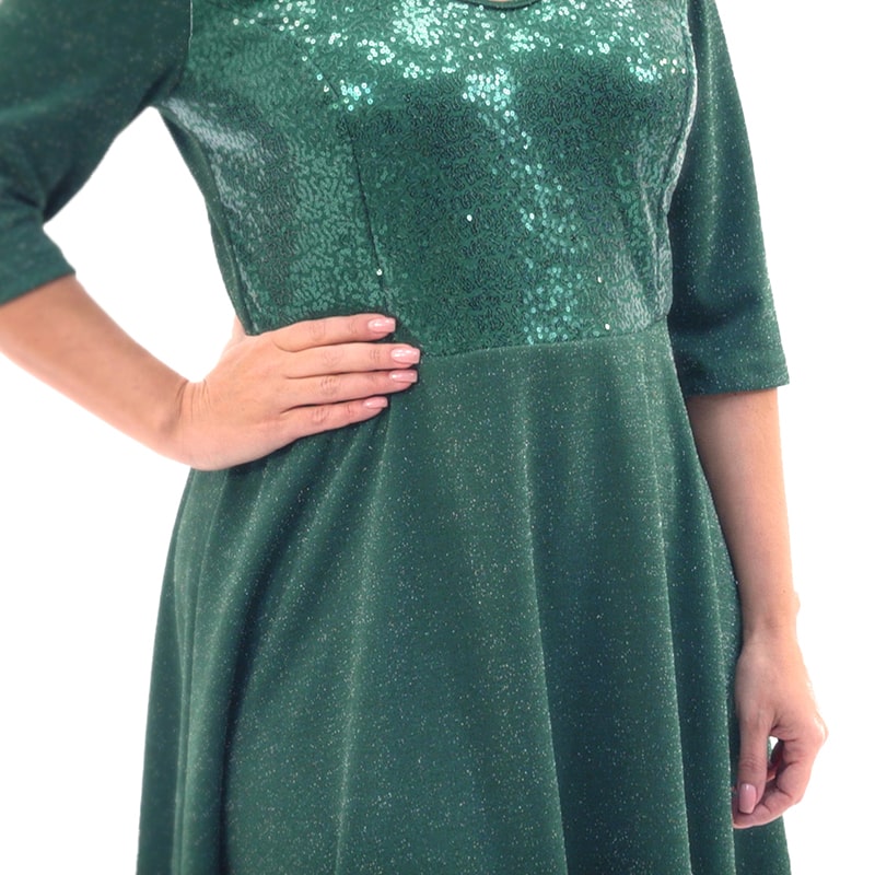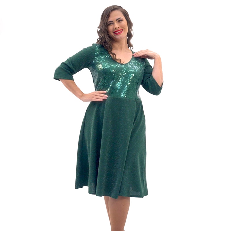 А тканина, що тягнеться, з люрексом і декор паєтками додадуть особливого шарму вашому образу! У колекції благородне зелене, насичене червоне і глибоке синє забарвлення! Ви точно підберете саме вашу! А розміри здвоєні від 42 до 56!