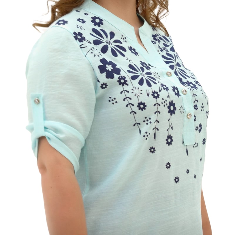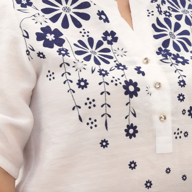 Сорочка Левія – це ваш неймовірний комфорт. Легка преміум тканина на основі бавовни – це саме те, що потрібно у теплий сезон! Комфорт забезпечений! Але дизайн привертає увагу! Вільний крій ідеально сідати на будь-яку фігуру! І якщо ви хочете приховати деякі нюанси, сорочка Левія – найкращий вибір! Вільний рукав три чверті з можливістю регулювання красиво лягає по ручці! І звичайно ж незвичайне оформлення зони декольте: планка на ґудзиках і комір-стійка витягують шию, а ультрамодний квітковий принт надає колорит етніки, особливо актуальний в цьому сезоні!