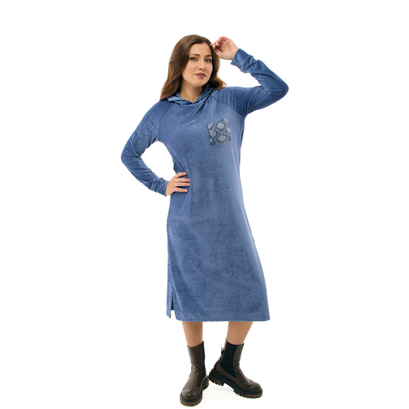 Дозвольте представити нову зірку від Розпакуй - сукню «Оксамитовий дотик»! У ній продумано все до найдрібніших деталей: сучасний крій, розкішний матеріал, стильне дизайнерське виконання і яскраві, ефектні забарвлення. Напівприталений подовжений силует візуально скоректує фігуру і підкреслить витонченість форм. Довгі рукави з манжетами надають образу елегантності, акцентуючи увагу на граціозності рук.