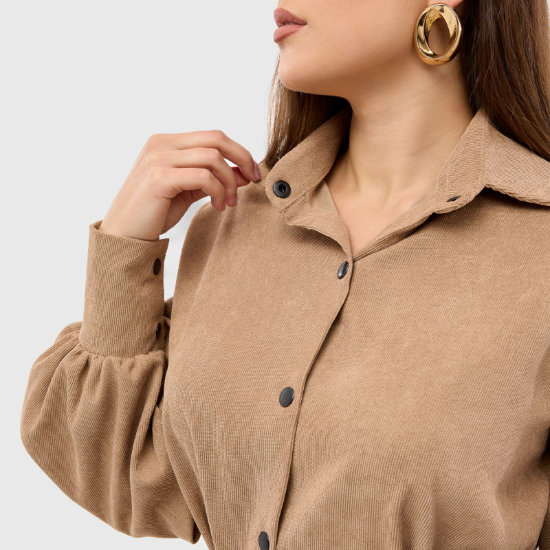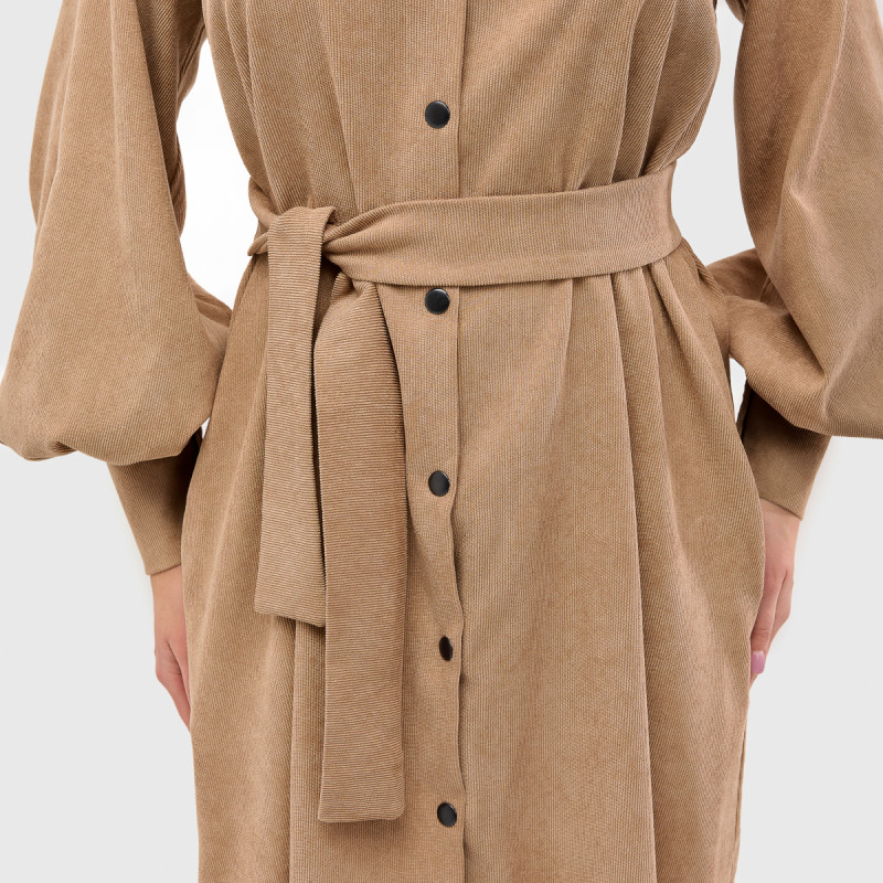 Сучасний та універсальний фасон. Сукня-сорочка - незамінний елемент гардероба. Вільний крій підходить для будь-якого типу фігури, а довжина міді візуально витягує силует, роблячи його елегантнішим. Поєднання класики та сучасних деталей. Класичний комір, застібки-кнопки, акуратні манжети - деталі, які роблять образ стильним і елегантним. Пояс на талії підкреслює жіночність.