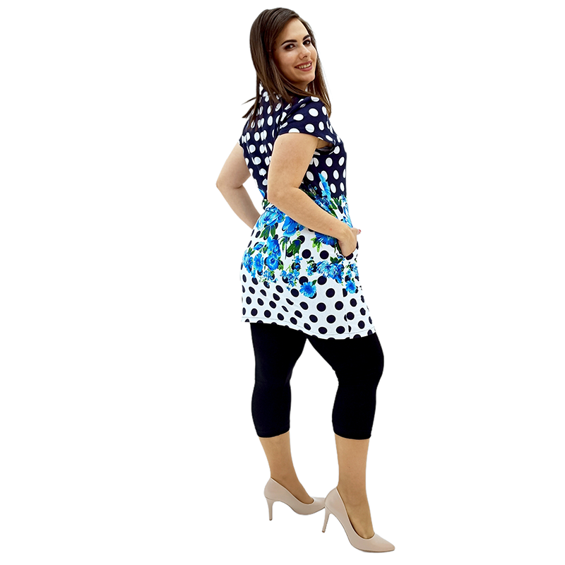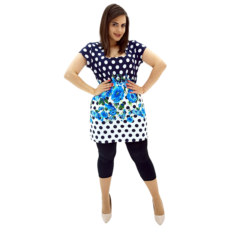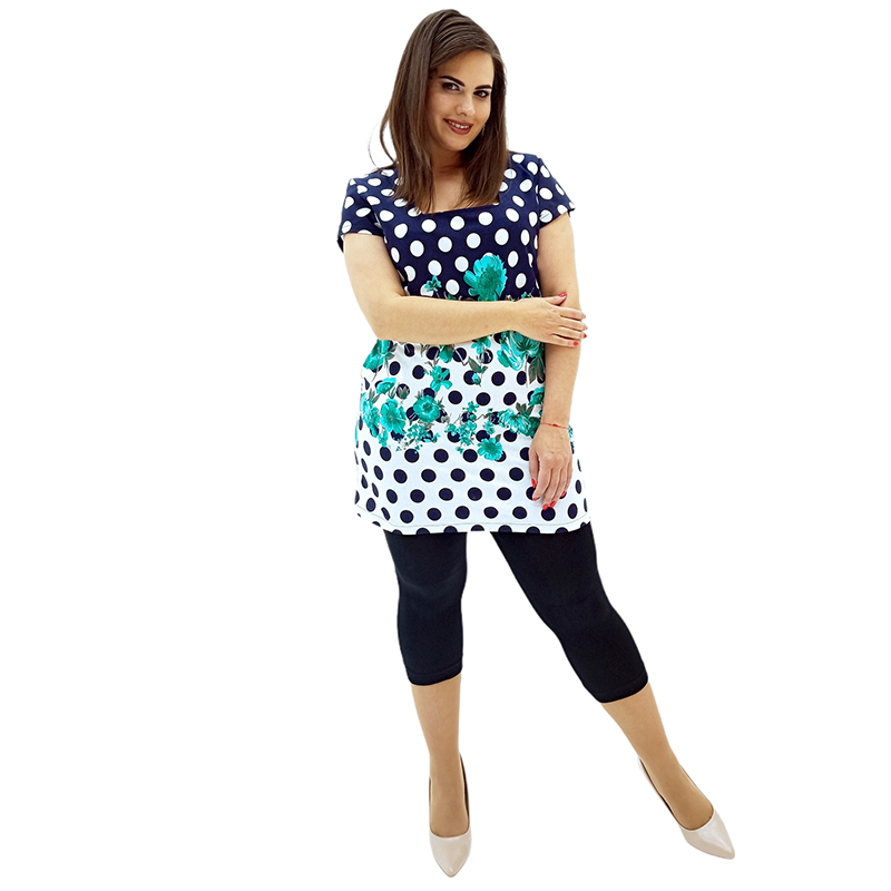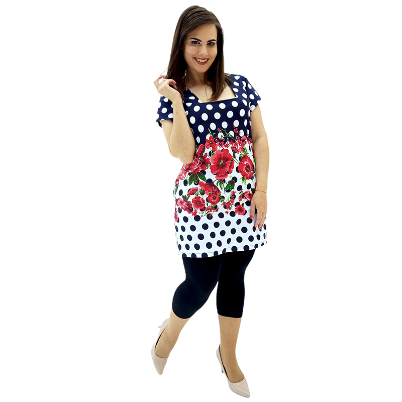 Поєднання квіткового малюнка і принта горох не залишить байдужою жодну модницю! Три забарвлення на вибір: ніжне блакитне, яскраве червоне і незвичайне бірюзове! І розмірний ряд - від 46 до 64!