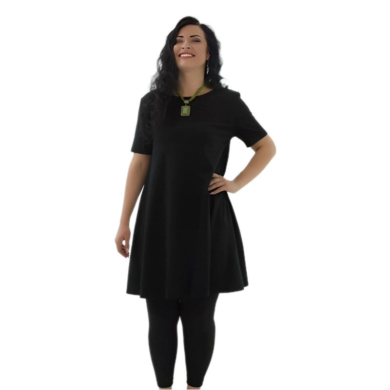Класичний чорний колір чудово поєднується з будь-якими іншими відтінками! А мінімалістичний дизайн пасуватиме до одягу будь-якого стилю! Хочете ошатний образ? Сміливо одягайте туніку як сукню, додайте аксесуари та взуття на підборах – і ви королева! Потрібен повсякденний - поєднуйте з джинсами або легінсами! З нашою сукнею-тунікою ви зможете створити безліч образів! А тішити вона буде вас не один сезон! Преміум-матеріал на основі бавовни чудово тримає форму та забезпечує комфортне самопочуття у будь-яку погоду!
