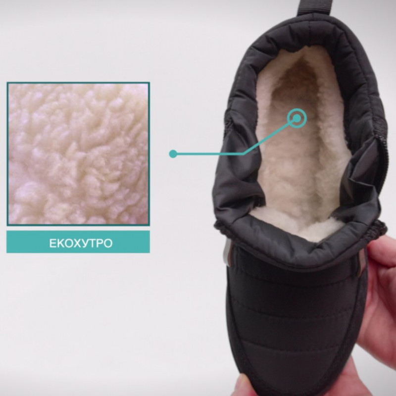Особливістю черевиків є їхній водонепроникний і зносостійкий матеріал, який захистить від дощу та снігу. Внутрішня частина взуття утеплена м'яким екохутром, що забезпечує комфорт і тепло навіть за температури до -30 градусів.