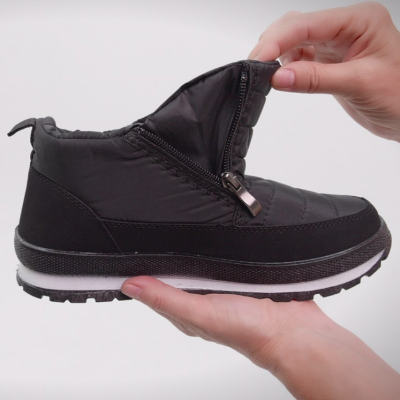 Завдяки широкому отвору, Ботинки Фроуз зручно надягають на будь-який об'єм ноги, а застібка-блискавка гарантує надійну фіксацію на нозі. Підошва черевиків гнучка й антиковзаюча, з амортизаційними вставками, що забезпечує легкість і впевненість під час ходьби.