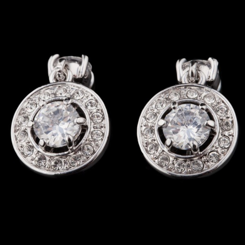 Композиция сверкающих круглых форм подобна солнечному диску в июльский полдень. В центре диаманит бриллиантовой огранки. Роскошное украшение подарит вам ощущение праздника. 18 карат золотое/родиевое покрытие. К серьгам комплектом предлагается роскошное кольцо. Замок-гвоздик, которым оснащается большинство статичных серег, иногда называемых пусетами. Чтобы украшения-гвоздики не соскальзывали с мочки, их закрепляют специальным зажимом, который примыкает к уху с тыльной стороны настолько, насколько желает владелица серег. Иногда (для фиксации серег на стерженьке) проделывают в области зажима углубление длина изделия-2.5 см,диаметр декор.элемента-1,5 см, центр.камень-0.7см