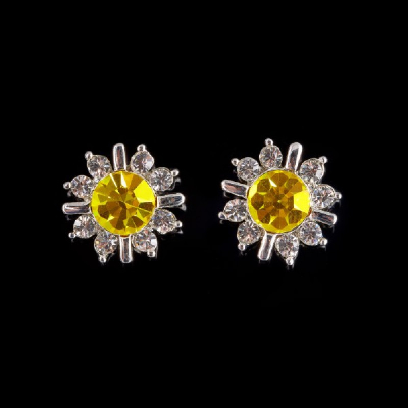 Замечательный пуссет - необходимый аксессуар для каждой женщины. Диаманит цвета гелиодор подчеркнут прозрачными кристаллами. 24 карата золотое/ родиевое покрытие, плакированная золотом/родием застежка. Замок-гвоздик