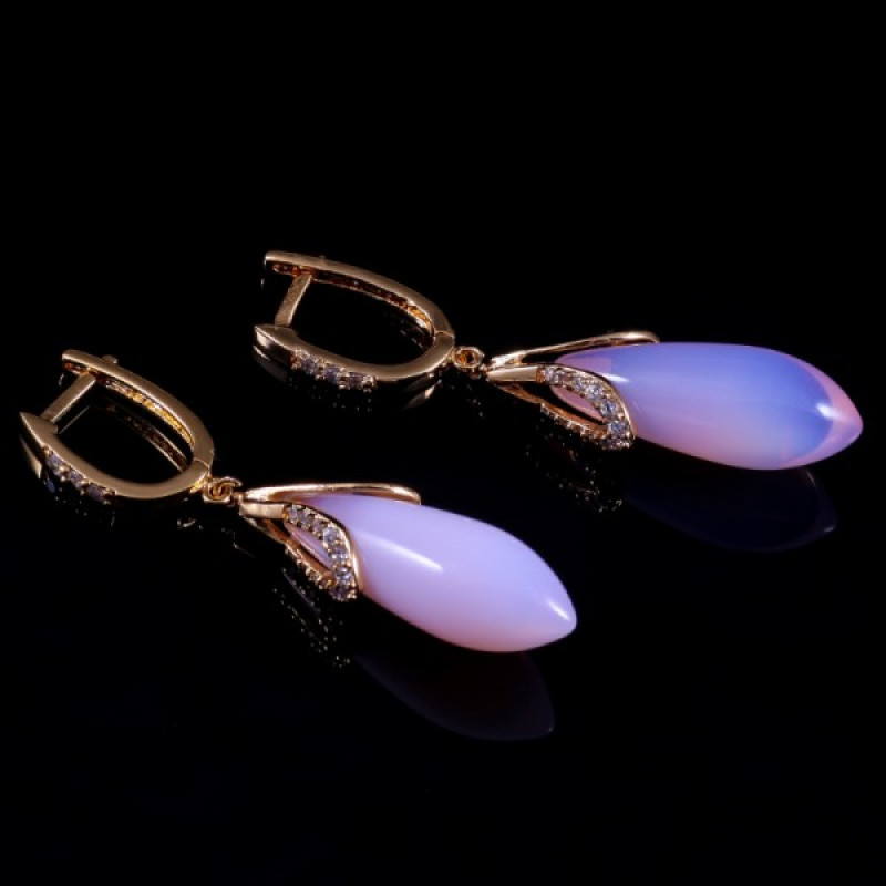 Большой диаманит каплевидной формы цвета благородного алебастра закреплен на золотистом основании. Эти серьги не останутся незамеченными, они не дополняют, они подчиняют! Замок- английский разламывающийся. Серьги, оснащенные английским замком, невероятно удобны и комфортны, следствием чего является их популярность у женского пола. механизм закрепления английского замка сводится к следующему: дужка просовывается в ухо и фиксируется в специальном отверстии при помощи пружинного зажима (процесс закрепления оканчивается еле слышимым щелчком)