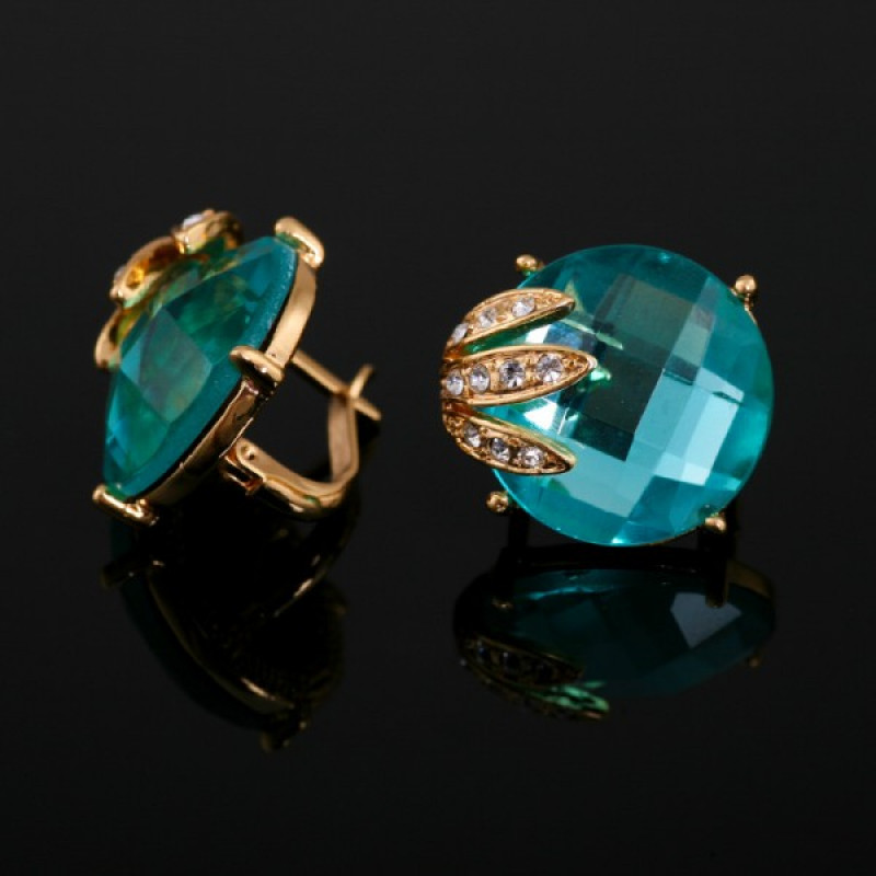Бирюзовый страз фацетной огранки выполнен, как спелая ягода. Серьги могут быть дополнены подвеской в комплекте. Жизнерадостное и эффектное украшение! Авторская работа. Серьги, оснащенные английским замком, невероятно удобны и комфортны, следствием чего является их популярность у женского пола. механизм закрепления английского замка сводится к следующему: дужка просовывается в ухо и фиксируется в специальном отверстии при помощи пружинного зажима (процесс закрепления оканчивается еле слышимым щелчком) Украшения с английским замком – классика, мода на которую не проходит. Диаметр декор.элем-1.7 см