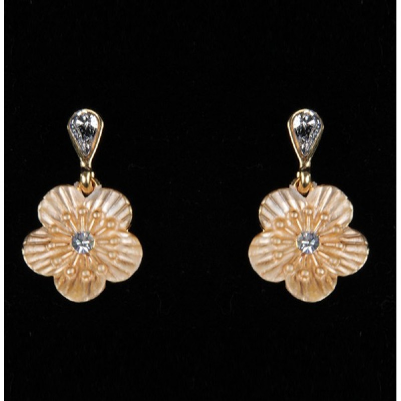 Оригинальные серьги-посты(гвоздик). Застывшие в желто-розовой эмали цветы. Золотое покрытие. К серьгам комплектом предлагается кулон. Диаметр-1.5 см, капля- 0.6 см