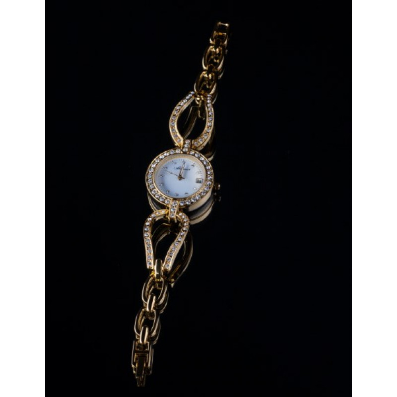 Невероятное количество камней установлены и на браслет и на сам корпус изделия.